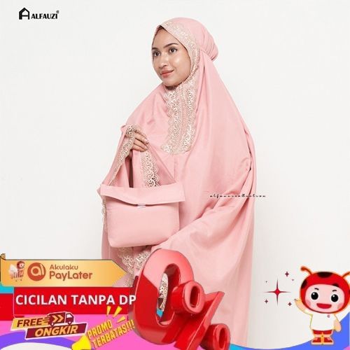 PROMO MUKENA ZAMORA DEWASA JUMBO 2 IN 1 RESLETING KATUN POLOS RENDA - HITAM