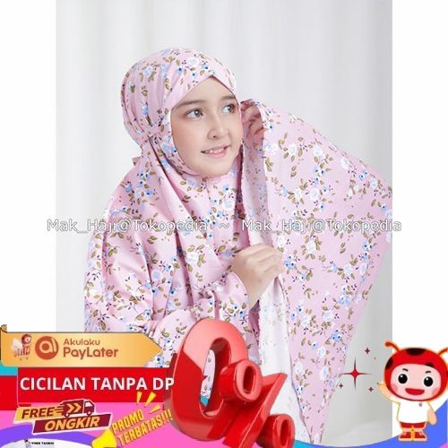 PROMO MAK_HAJI MUKENA ANAK RASYA TRAVELING 2 IN 1 KATUN MOTIF CANTIK - HIJAU