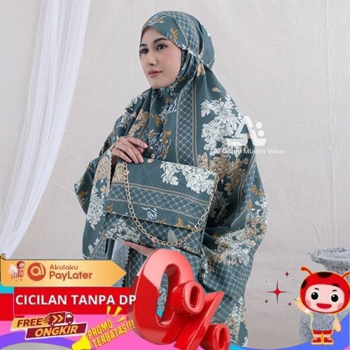 PROMO MUKENA DEWASA 2IN1 KATUN MOTIF PRINT - GREENTEA BUNGA