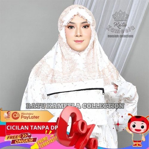PROMO MUKENA TERUSAN DEWASA SUTRA PARIS PRADA BORDIR RENDA MEWAH RATUKAMEELA - PUTIH SENADA