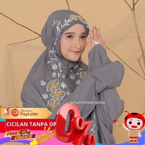PROMO MUKENA ATAS BAWAH BERLENGAN FATIMAH BORDIR MANUAL BAHAN KATUN NYAMAN FREE TAS BORDIR - ABU-ABU