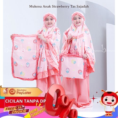 PROMO MUKENA ANAK KATUN STRAWBERRY SALEM ( TAS SAJADAH ) - XS