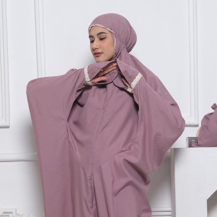 PROMO MUKENA TERUSAN AMERA DEWASA TRAVEL RENDA JUMBO TRAVELING - DUSTY PURPLE
