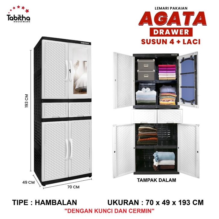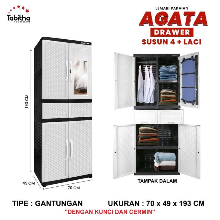 Lemari Plastik / Lemari Baju Tabitha / Lemari Pakaian Plastik / Lemari Baru Dengan Laci Lemari 2 Pintu / DISKON 30%