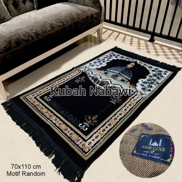 Sajadah Turki BerkualitasJumbo Beludru Halus Tebal Empuk Souvenir Umroh Sajadah Dewasa Amir Glod Turkey Ukuran 70x110 cm