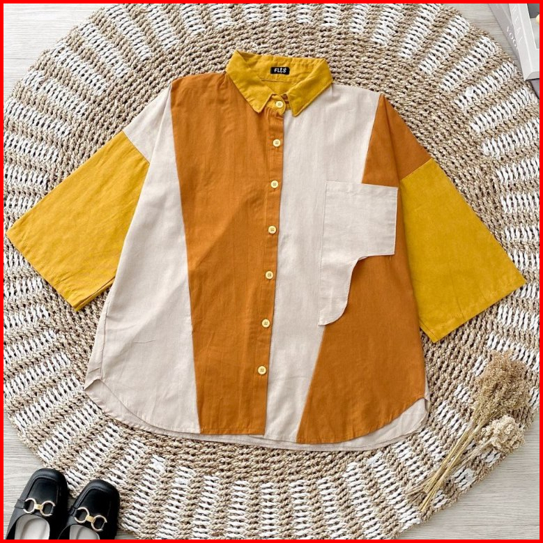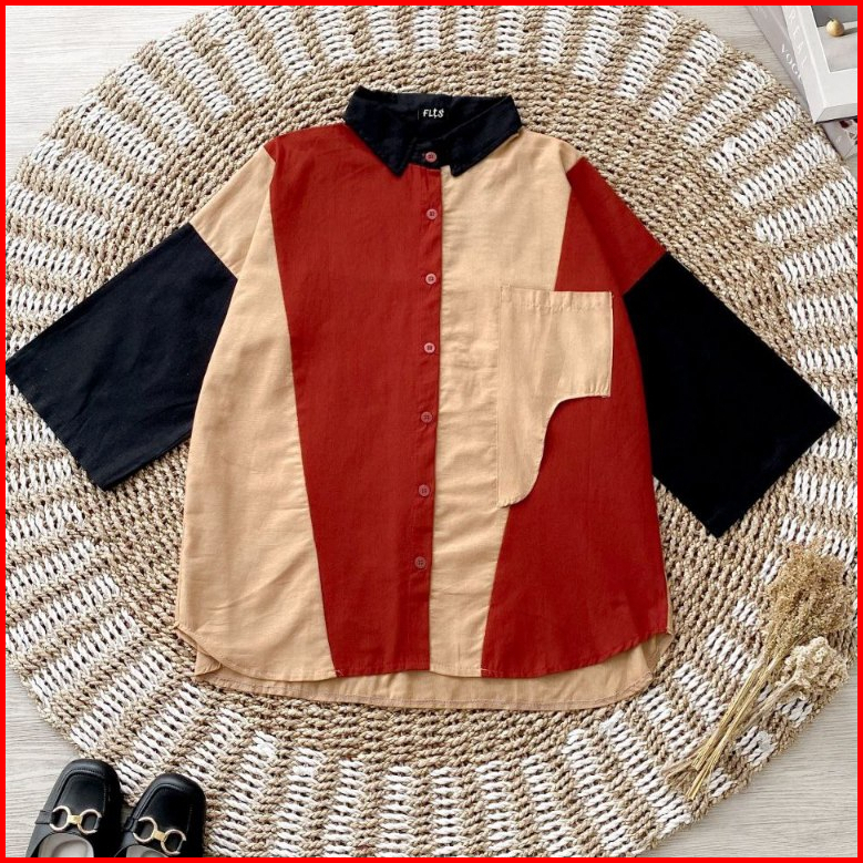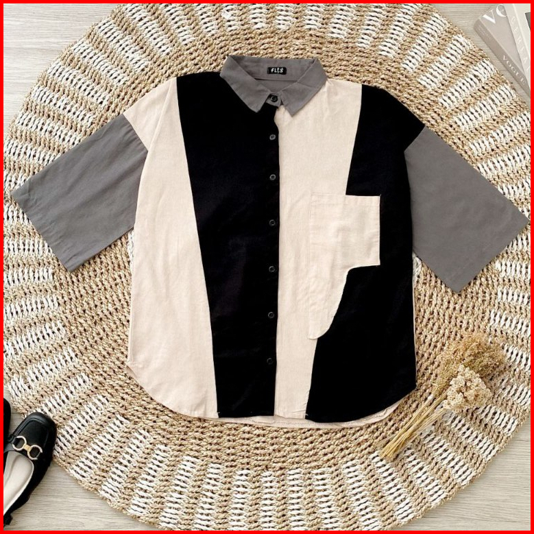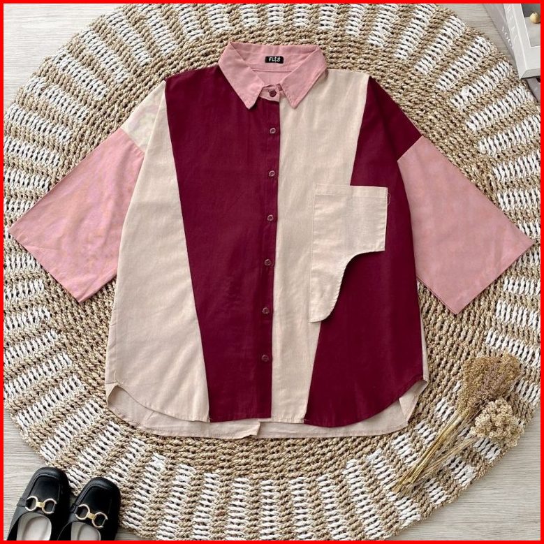 Maiza Shirt Oversize Top Atasan Kemeja Linen Rami Polos Basic Fashion Baju Muslim Kerja Casual Wanita Remaja Premium Ter
