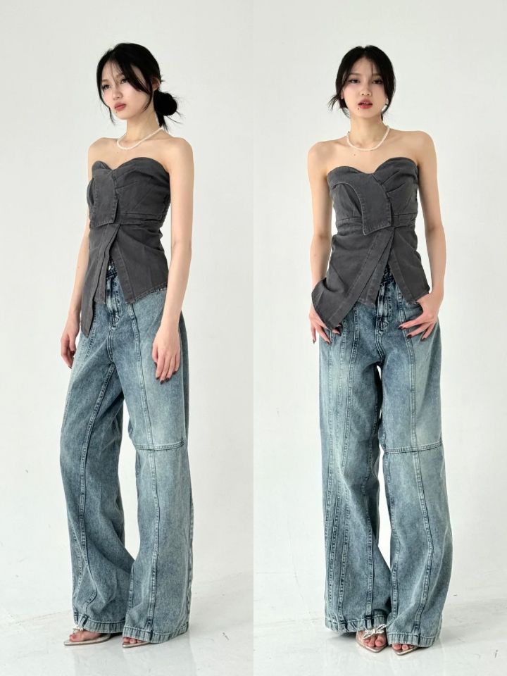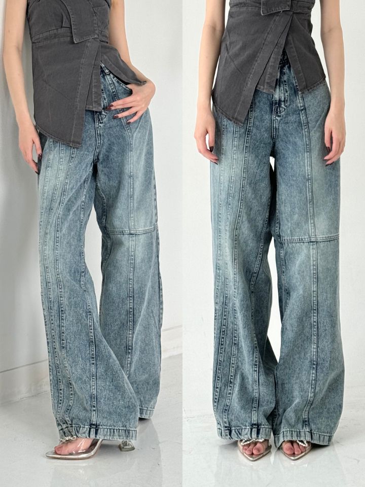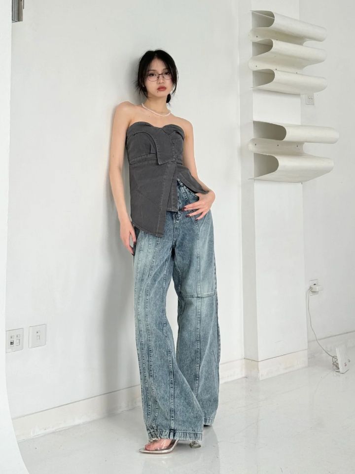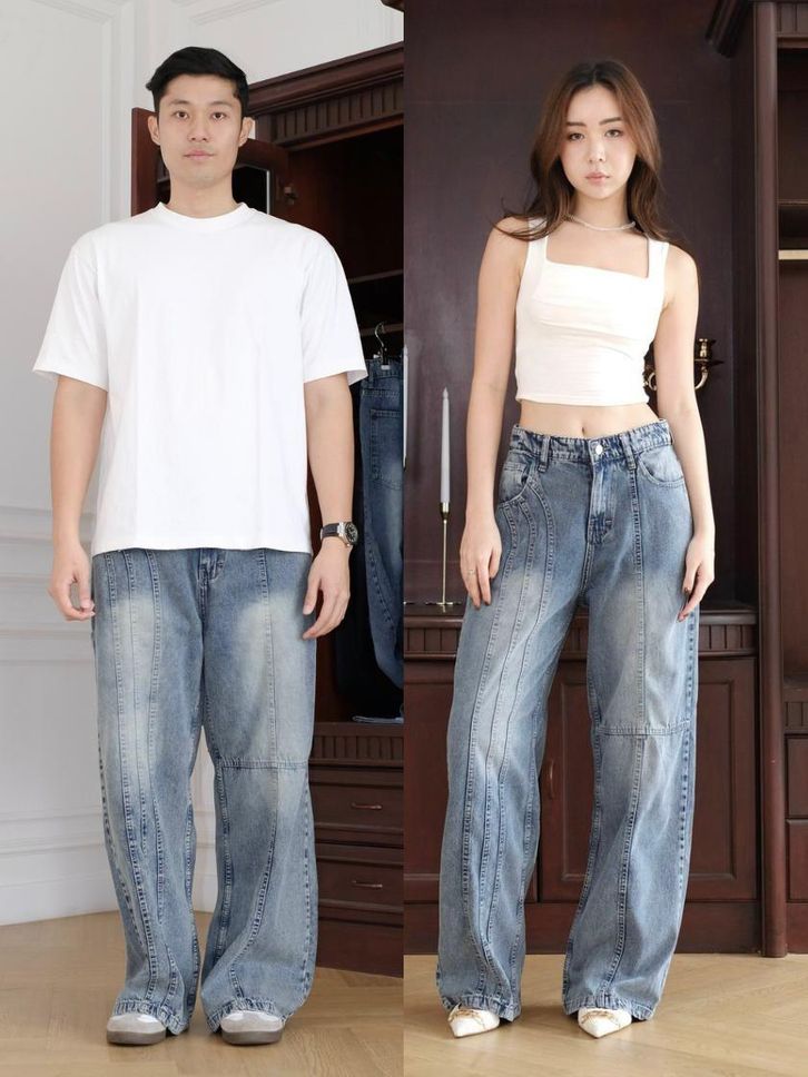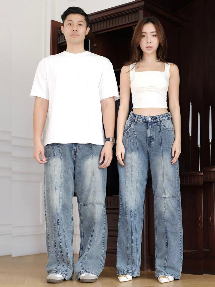 Celana Jeans Panjang Denim Wanita Ash High Waist Baggy Unisex LADOUCE