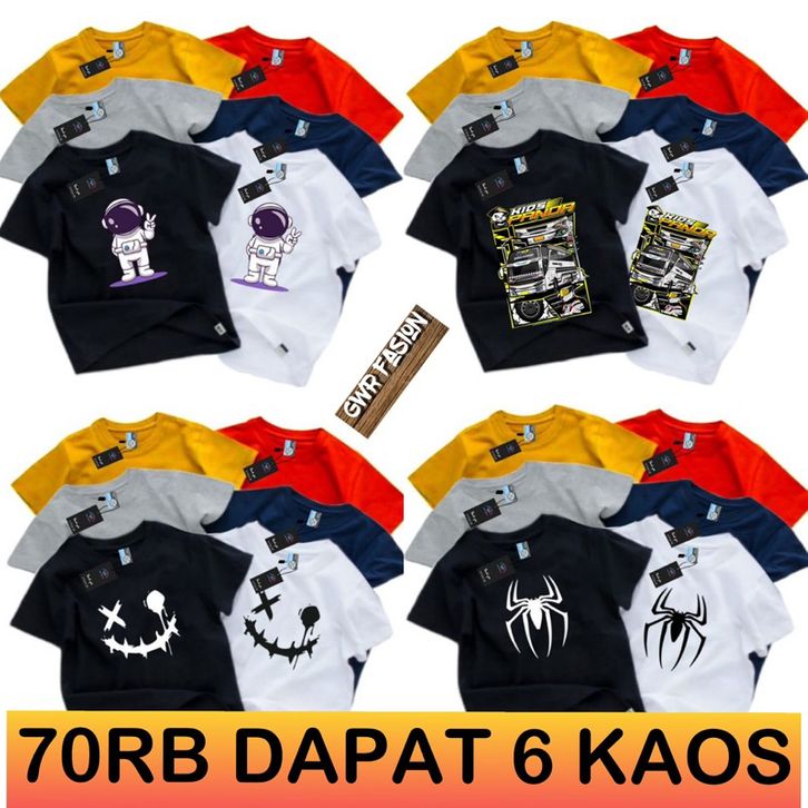 BAJU LEBARAN 2025 PROMO 65RB DAPAT 6 KAOS ANAK ANAK 2-16 Tahun Baju Unisex Perempuan Dan Laki Laki Kekinian