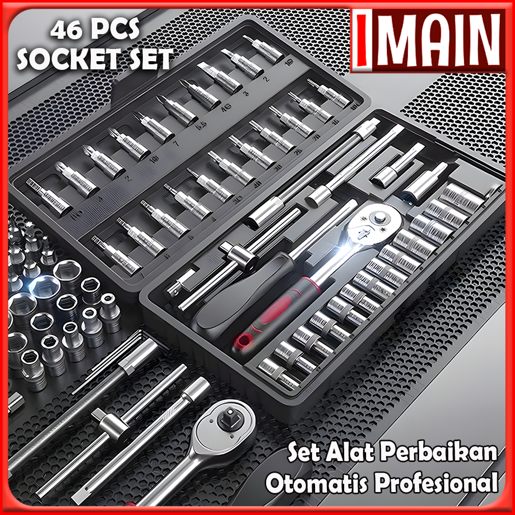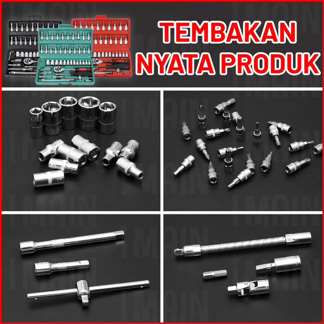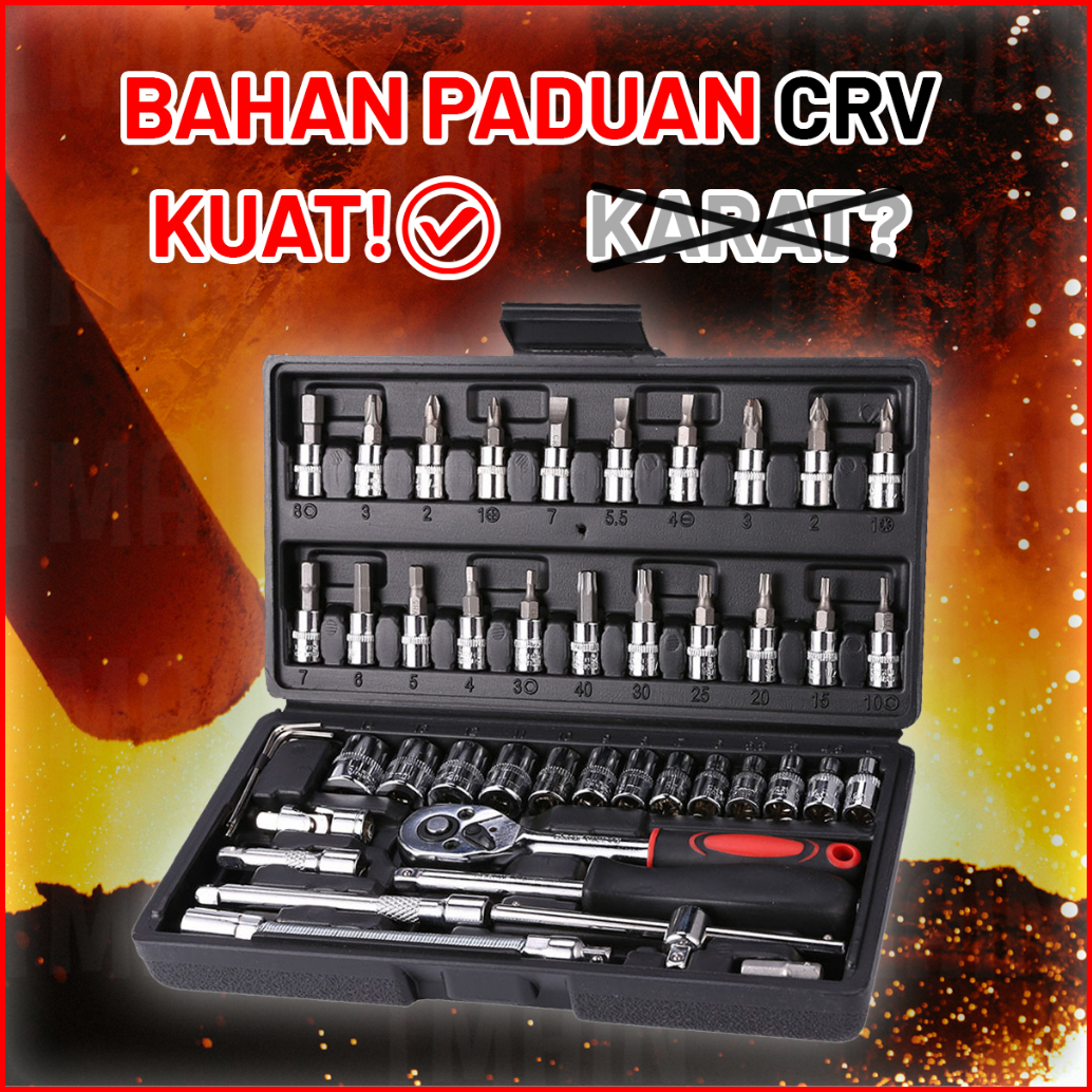 46pcs Kunci Sok Set Socket Full Lengkap Socket Tool Kit Pas Ring Motor Kunci Socket Wrench Pas Sok Shock
