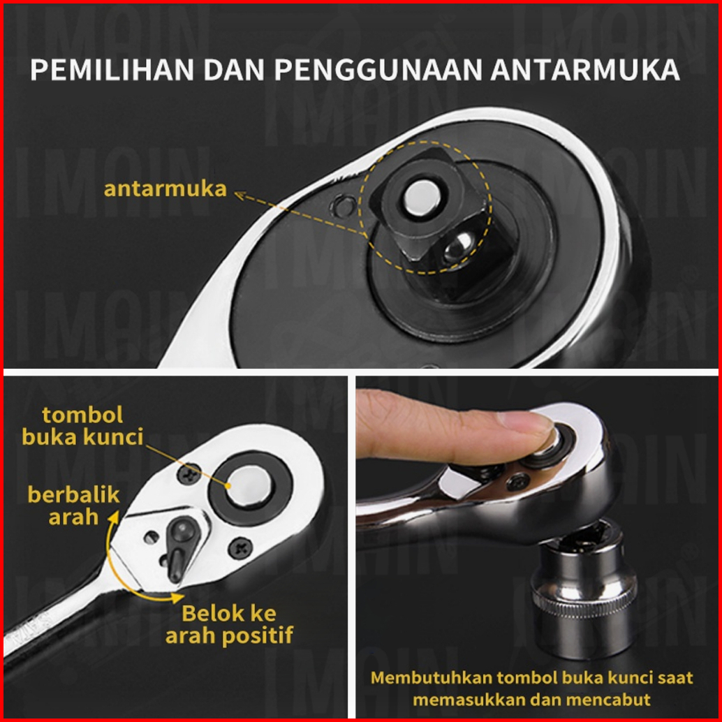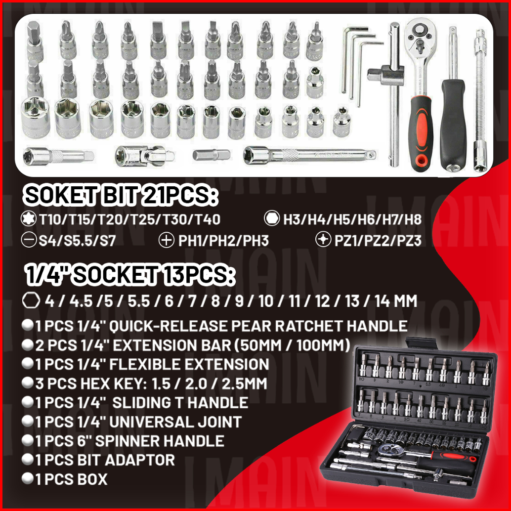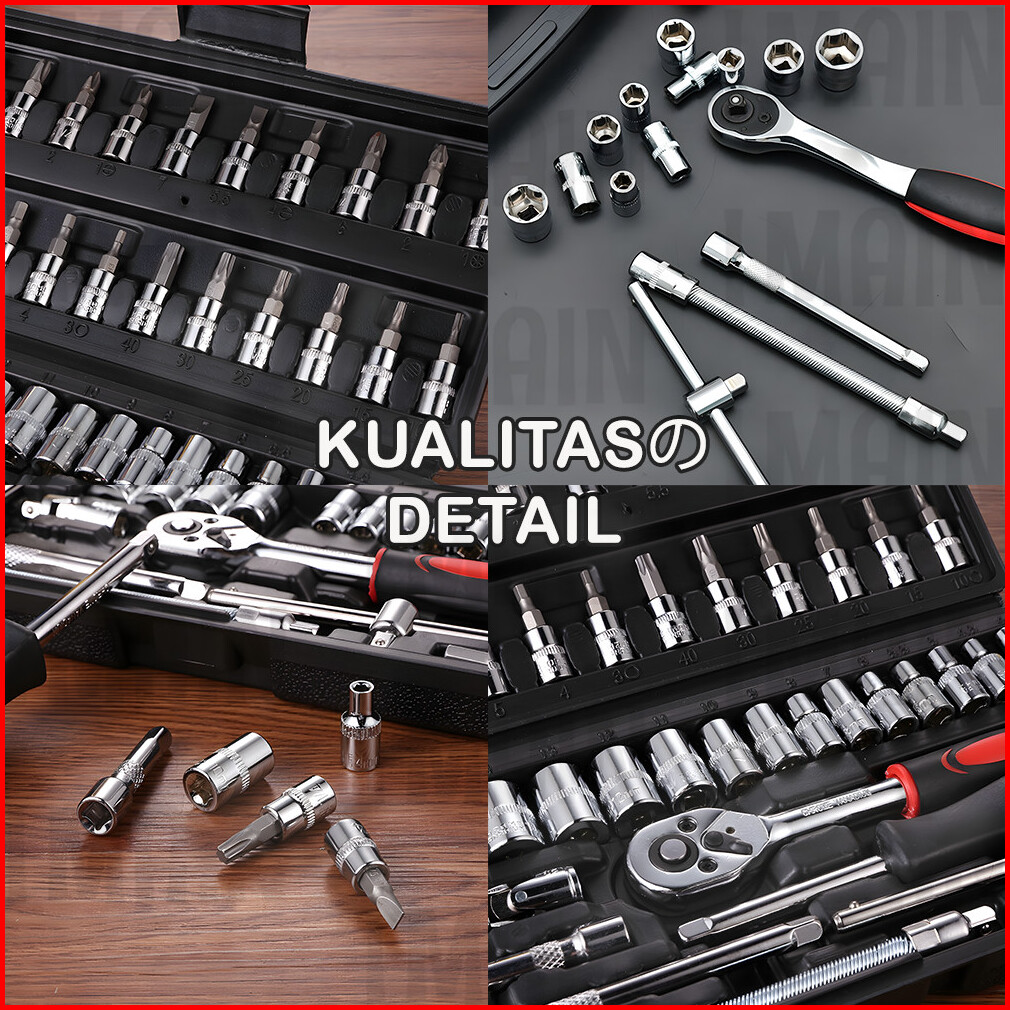 46pcs Kunci Sok Set Socket Full Lengkap Socket Tool Kit Pas Ring Motor Kunci Socket Wrench Pas Sok Shock