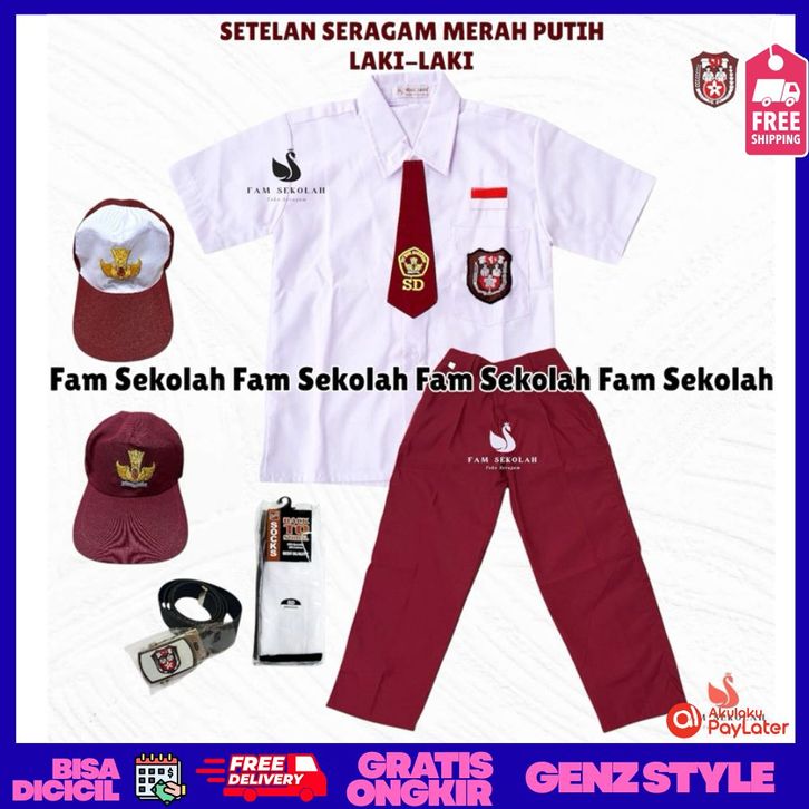 SETELAN SUPER LENGKAP SERAGAM SEKOLAH SD LAKI-LAKI BAJU PENDEK CELANA PANJANG