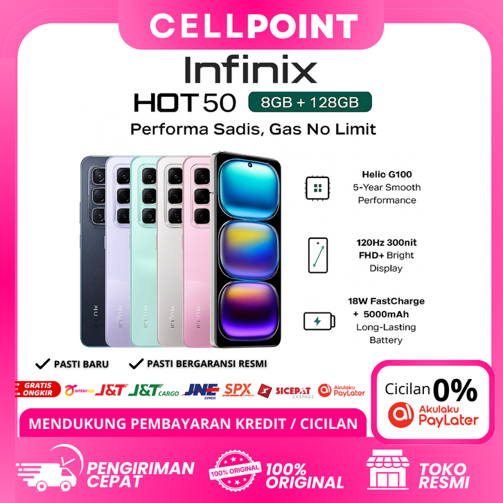 HP INFINIX HOT 50 8/128GB - UP TO 16GB EXTENDED RAM - HELIO G100 - 6.78 INCH 120HZ FHD+ - 50MP - 5000 MAH - NFC ORIGINAL