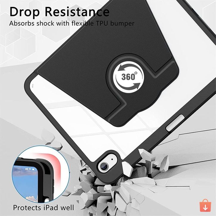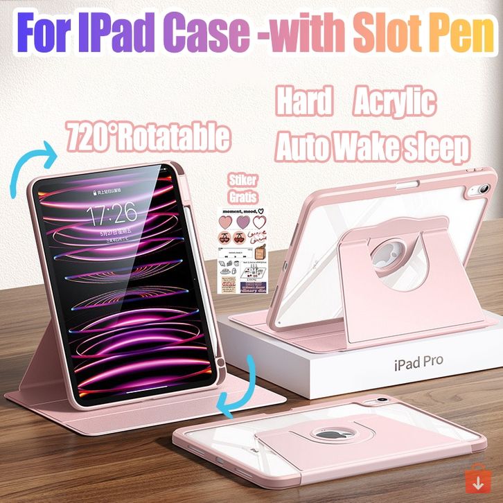 Casing Ipad720°Rotate Flip Case iPad Gen 10 Pro 11 9.7 10.2 Autolock Foldable Case iPad Air 5 4 Gen 6 Acrylic Crystal Cl