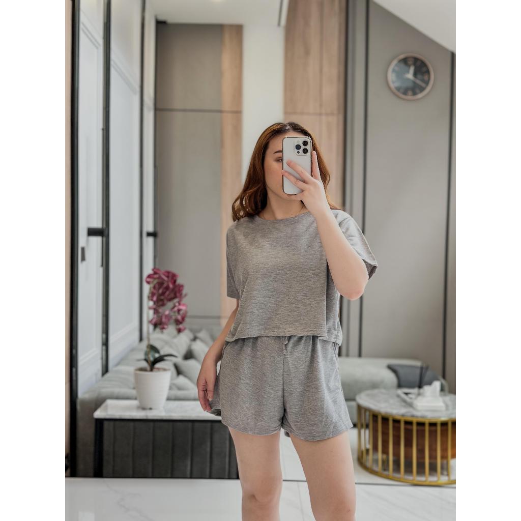 (FLASH SALE) Setelan Wanita Crop Top Set Lengan Pendek dan Celana Pendek Wanita Stelan Jumbo Wanita IF 044