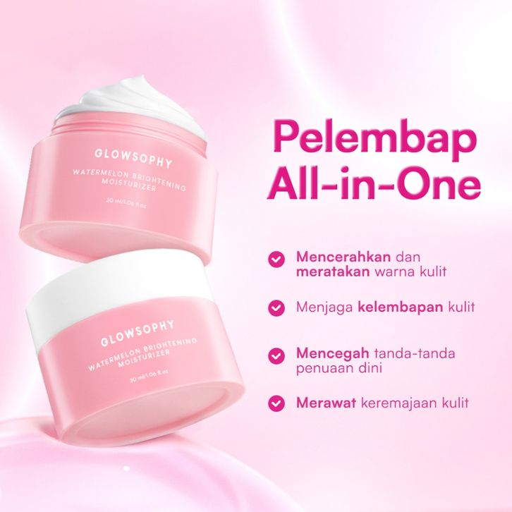 Glowsophy Watermelon Brightening Moisturizer Gel 30ml - Pelembab Wajah Ringan Mencerahkan Kulit dan Meratakan Warna Kuli