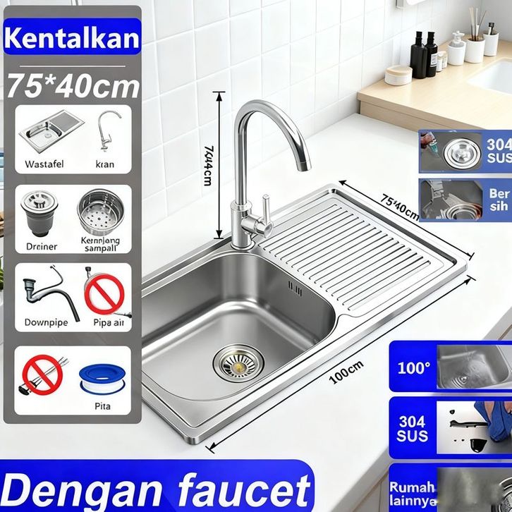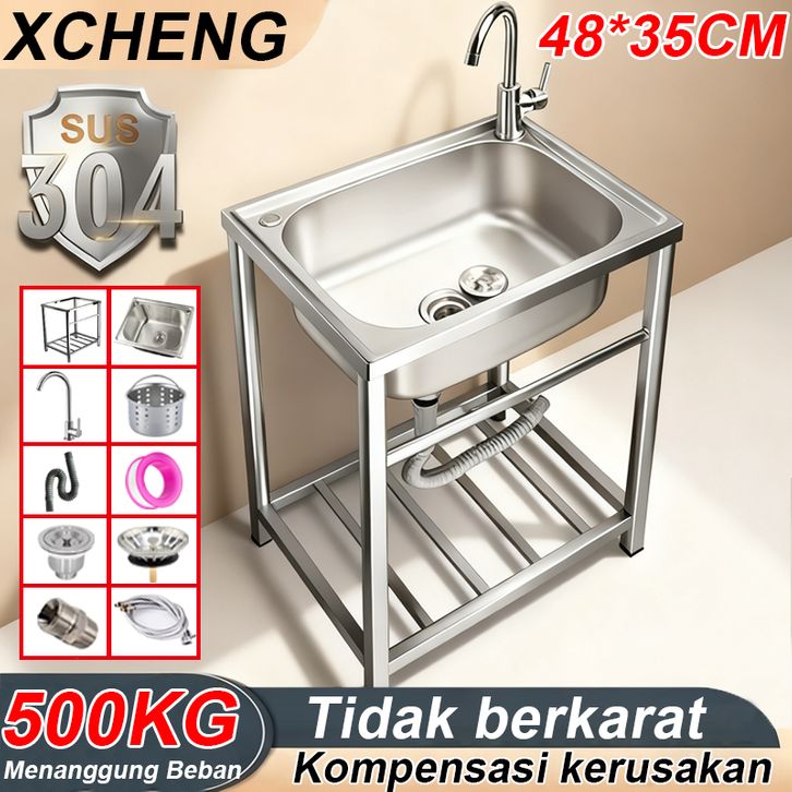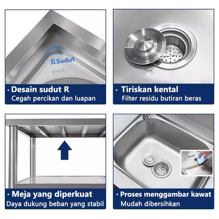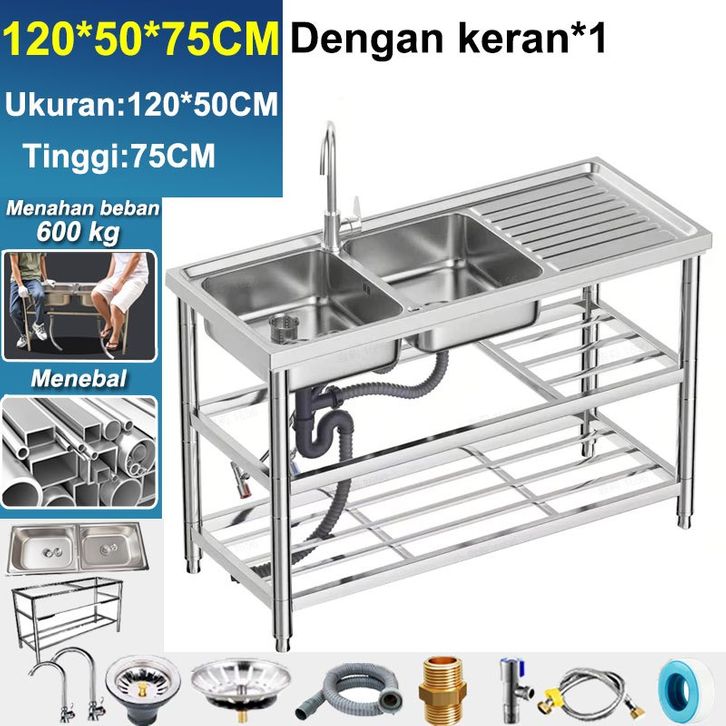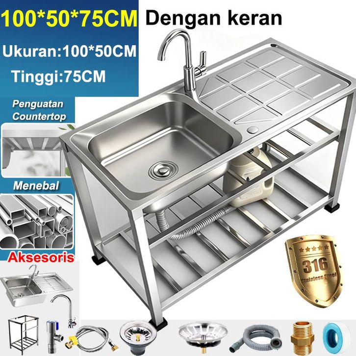 Wastafel Cuci Piring Set Wastafel Cuci Piring Pake Rangka Besi Tebal Kitchen Sink Wastafel Portable Tahan Karat Awet