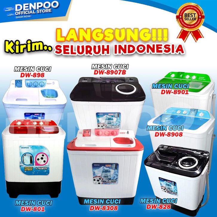 Denpoo DW828 Abu (8KG), Denpoo DW828 Putih (8KG), Denpoo DW801 Merah (8KG), Denpoo DW8908 Biru (8KG), Denpoo DW1190H (11KG), Denpoo Mini DW3 (4.5KG), Aqua ATW7 (7KG), Aqua ATW8 (8KG), Aqua QW-9030HT (9KG), Aqua QW-1370HT (13KG), Sanken TW-8600 (8KG), Sanken TW-9650 (9KG), Sanken TW-1127 (11KG), Sharp ES-T79SJ-BLT (7kg), Sharp ES-T79SJ-LCT (7kg)