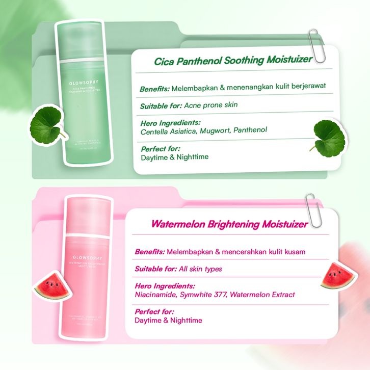 Glowsophy Moisturizer Bundle CICA Centella Soothing Moisturizer 100 ml + Watermelon Brightening Moisturizer Niacinamide