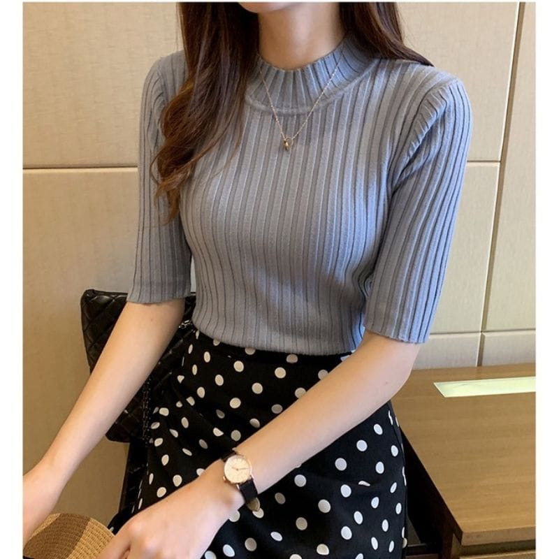 (FLASH SALE) SIZE STANDAR DAN JUMBO BB 40-90KG TurtleNeck rajut Lengan 3/4 Atasan Baju Rajut Wanita