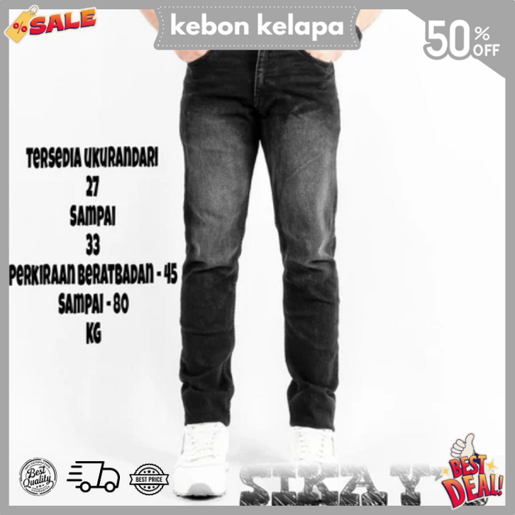 celana levis pria Celana Jeans Pria Slim fit Street Celana Jeans Panjang Pria Black Jazz terlaris