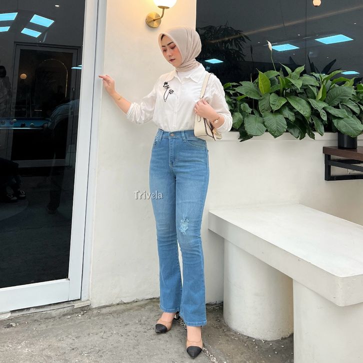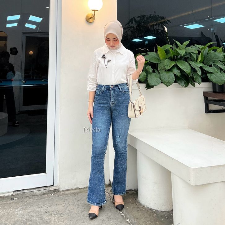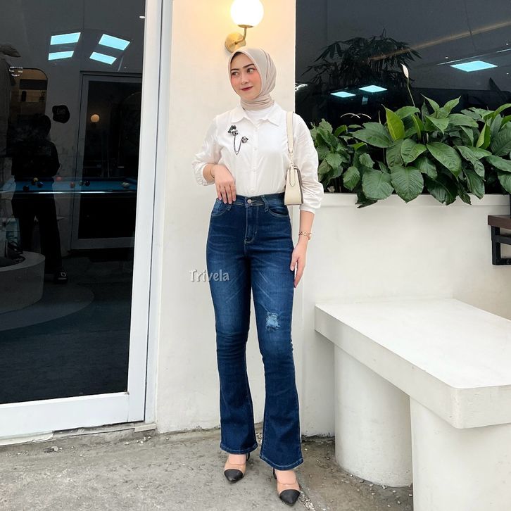 [BUTIKITA] Celana Jeans Wanita High Waist Slim Fit Bootcut | Jeans Stretch Slimming Kekinian Elegan Korea Style
