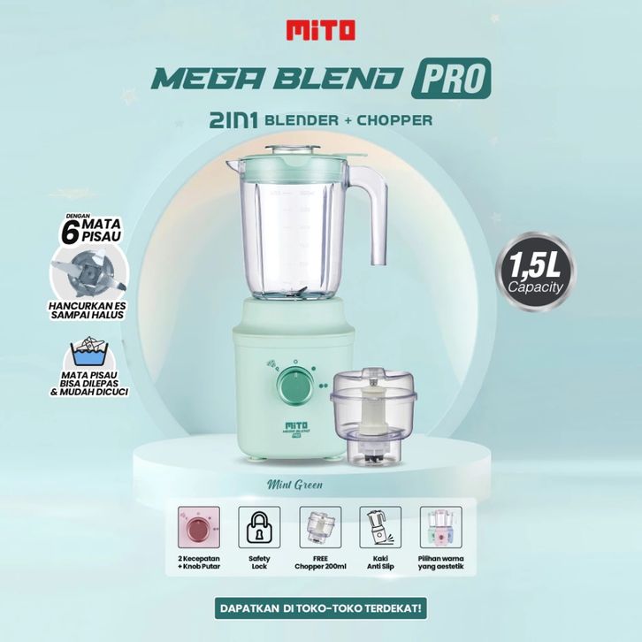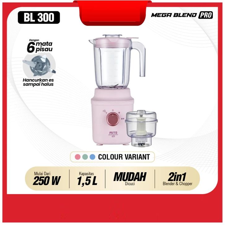 MITO MEGA BLEND PRO BL300 - 1,5L Jar 2 Tingkat Kecepatan + Pulse + 6 Mata Pisau dengan Ice Crusher