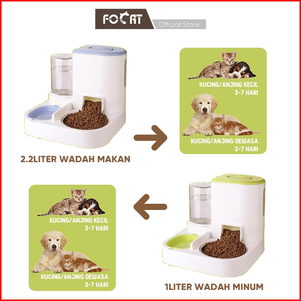 Focat Tempat Makan Minum Otomatis Kucing Anjing Ekstra Besar M76 Automatic Pet Feeder