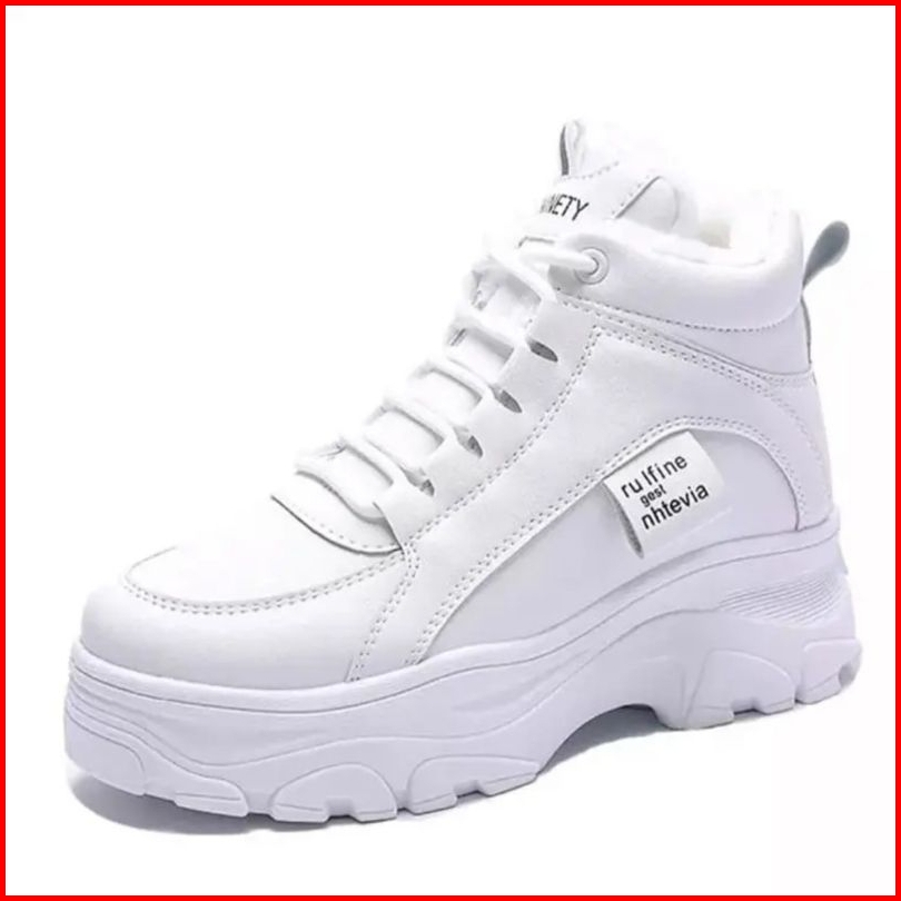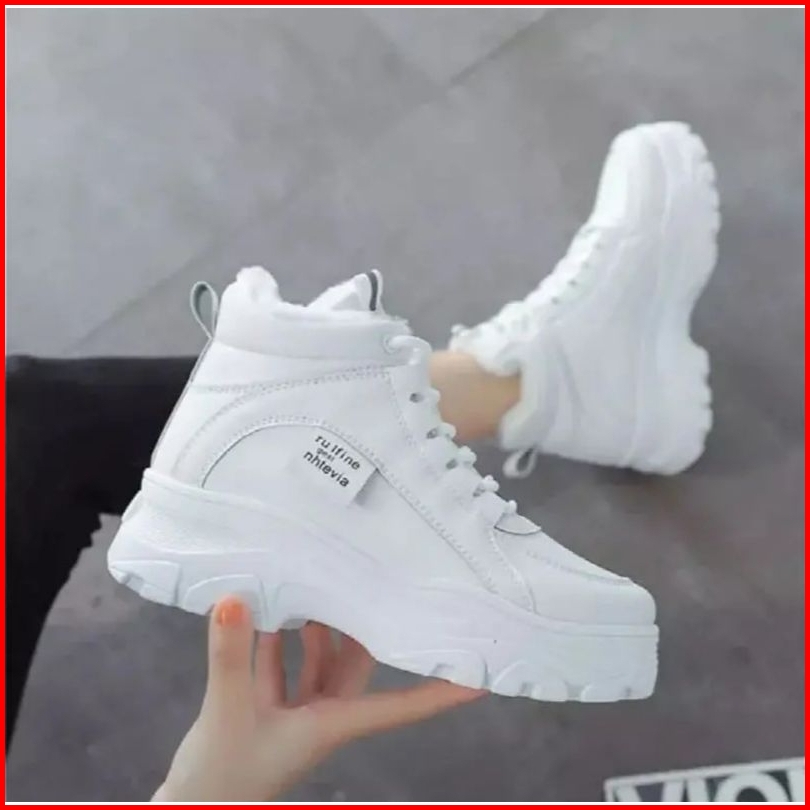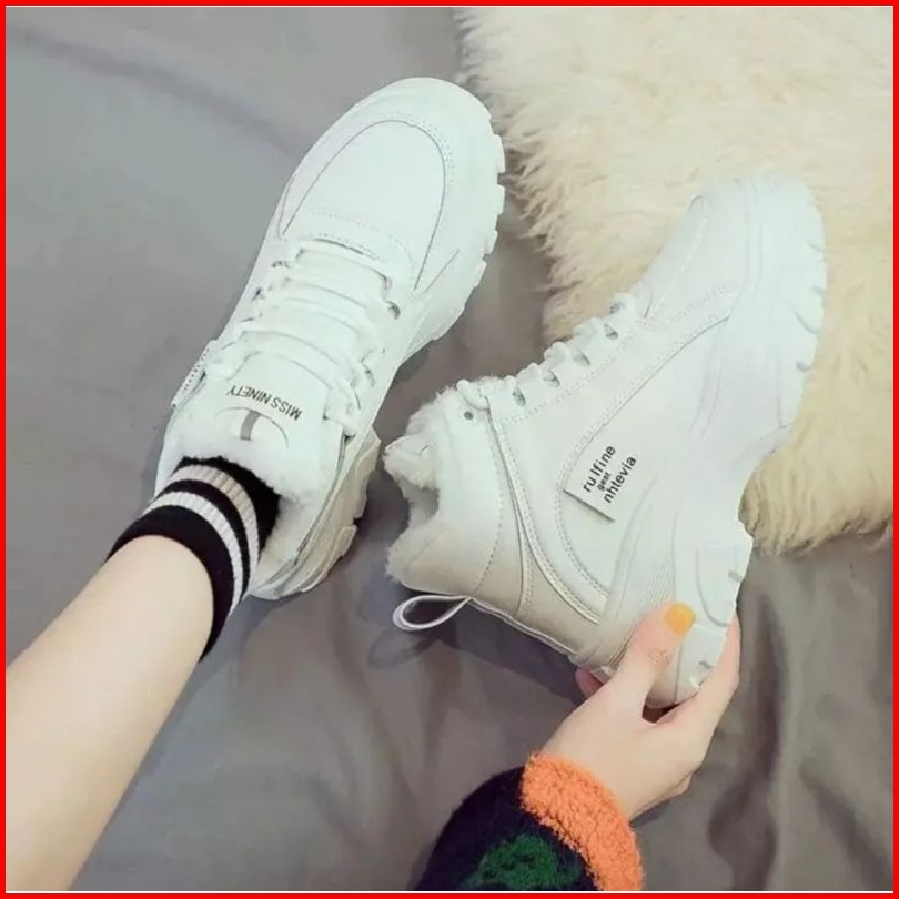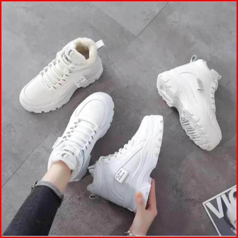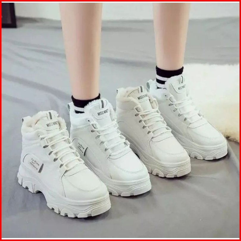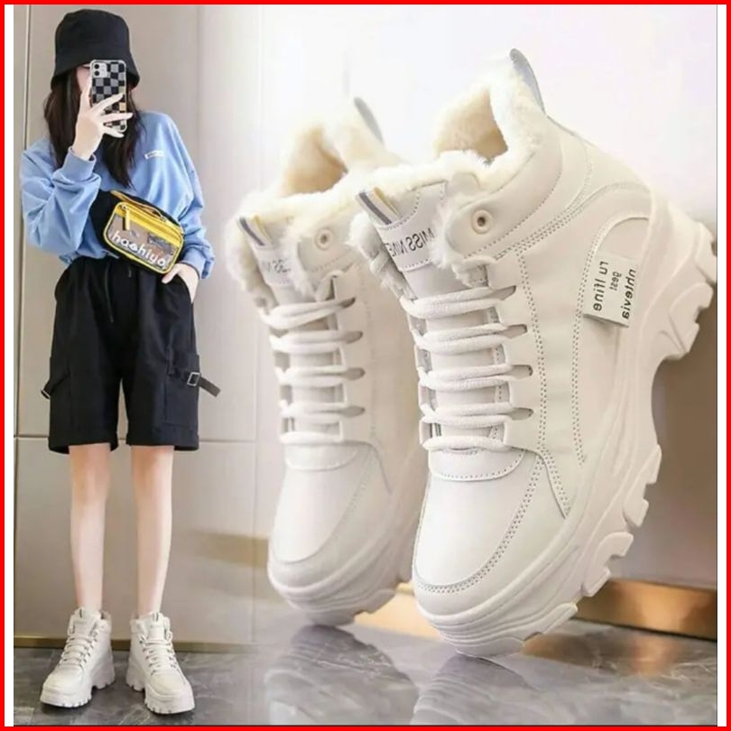 Ds Sepatu Boots Casual Wanita Putih Korean Style High-top Hangat Berbulu Halus
