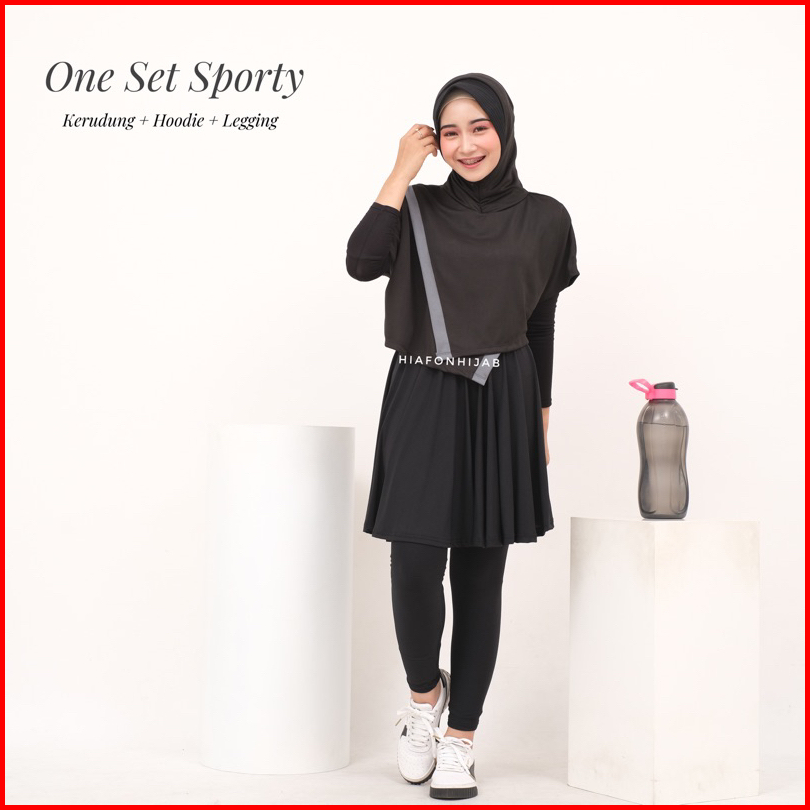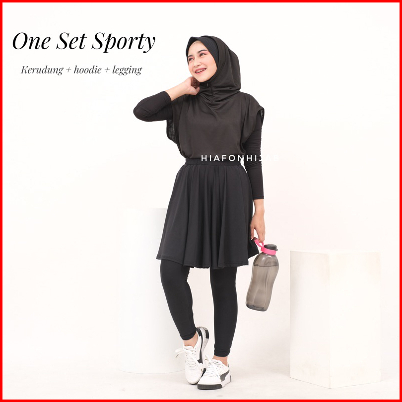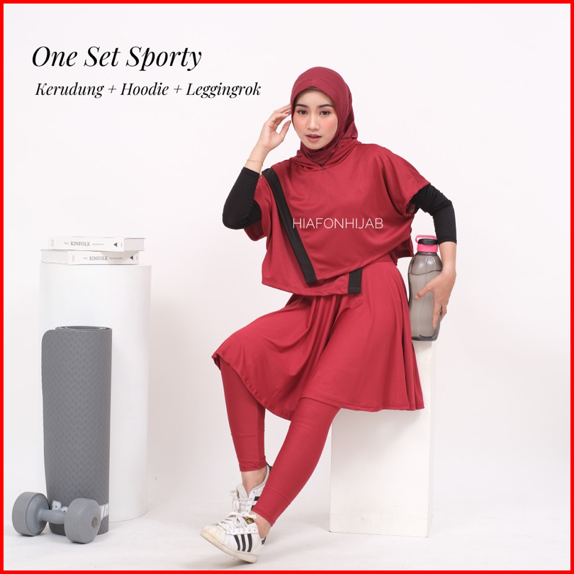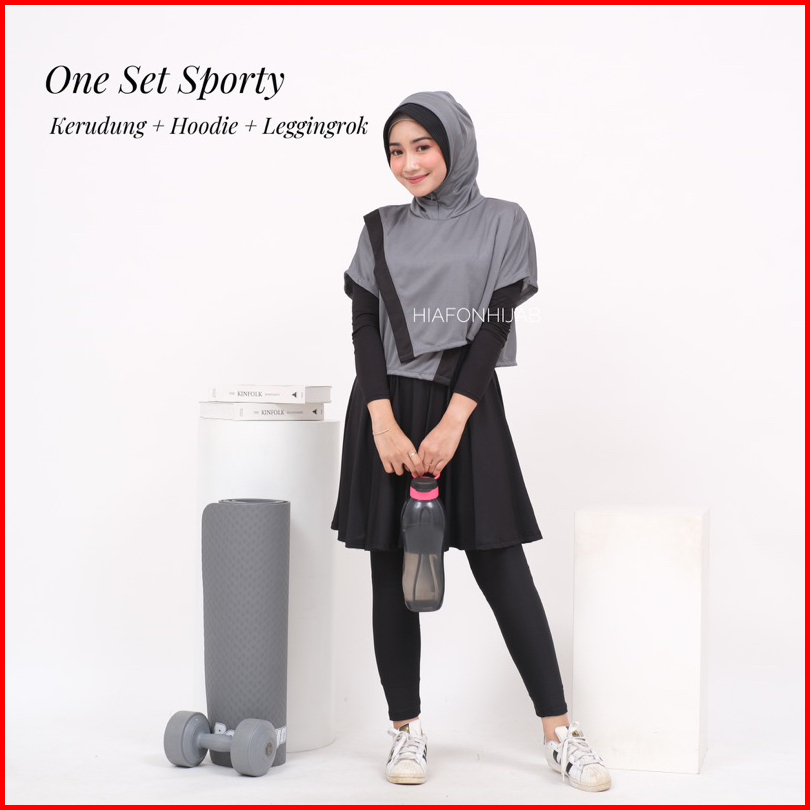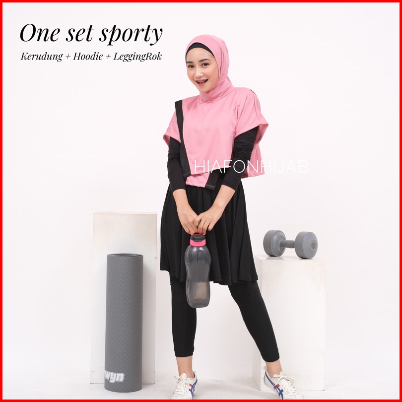 One Set Baju Olahraga Kerudung Hoodie Leggingrok One Set Sporty Baju Olahraga Belum Manset