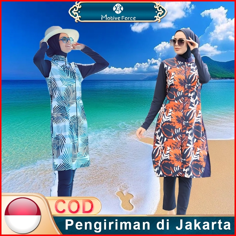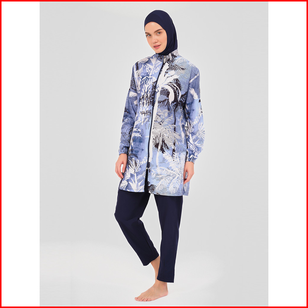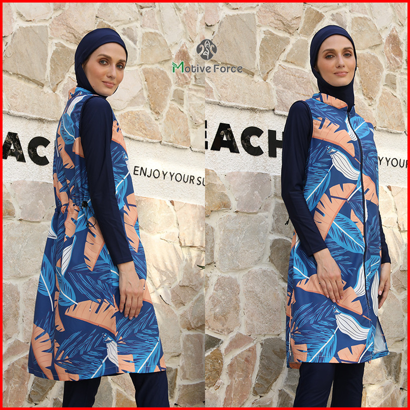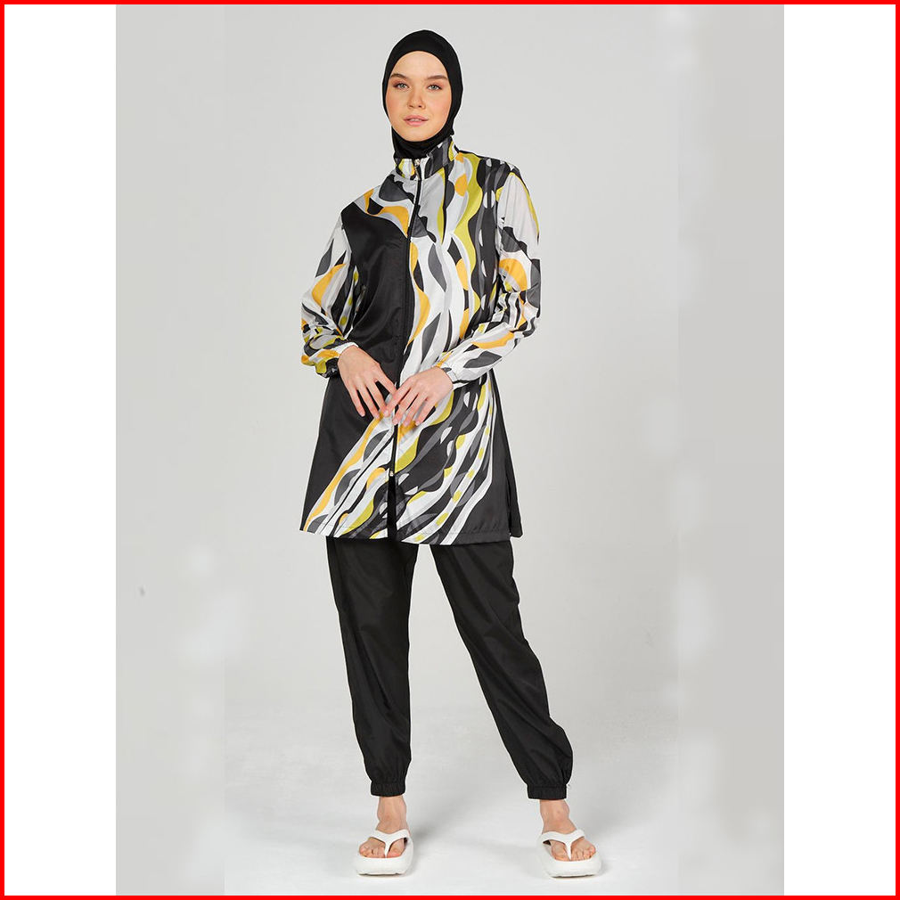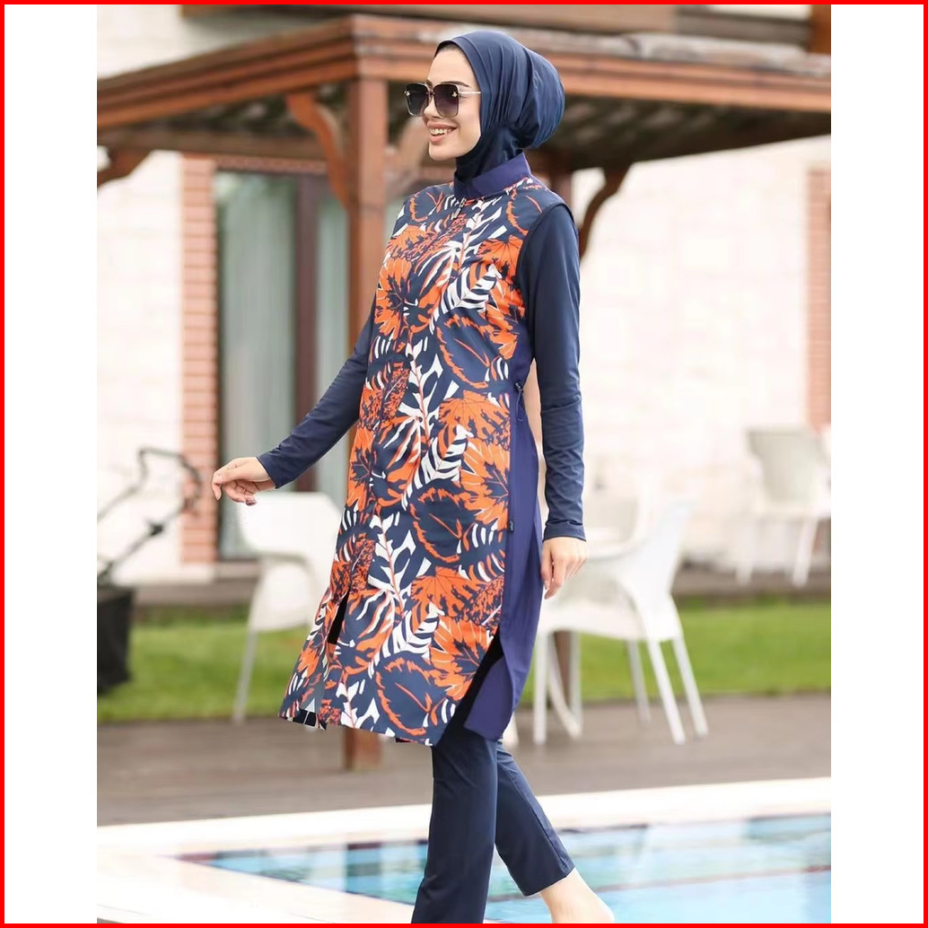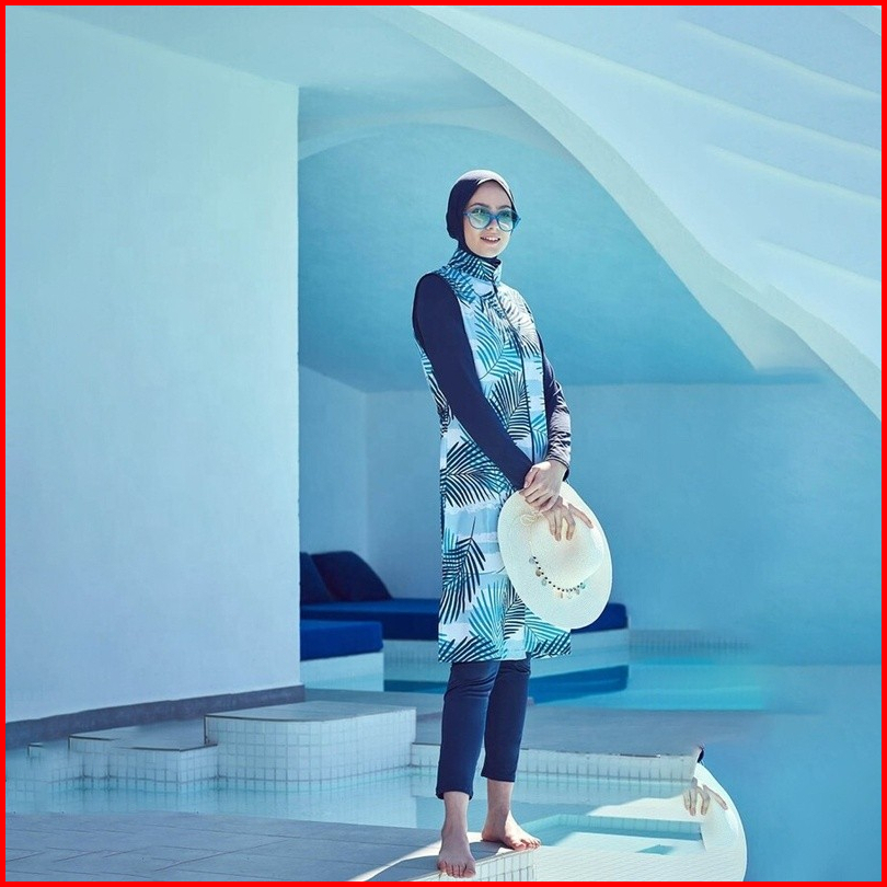 Baju Renang Pencetakan Set 4 -piece Lengan Panjang Baju Renang Mode Muslim
