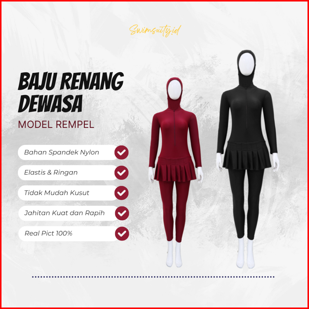 Baju Renang Wanita Muslim Dewasa Jumbo Polos Lapisan Cup Bh Model Rempel