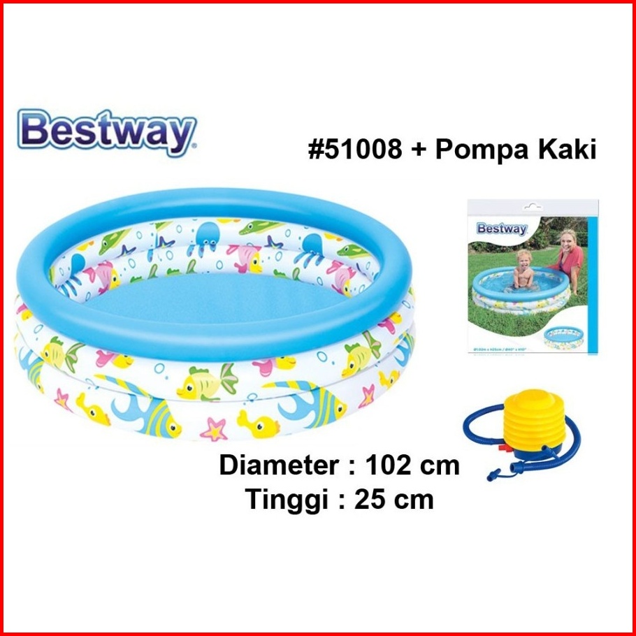 Kolam 102cm Bestway 51008 Kolam Bawah Polos Kolam Renang Anak Bulat Bestway Ocean Life Pool
