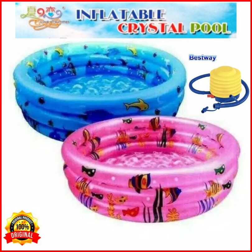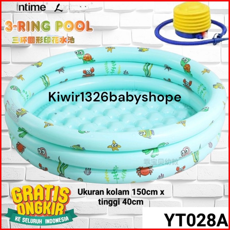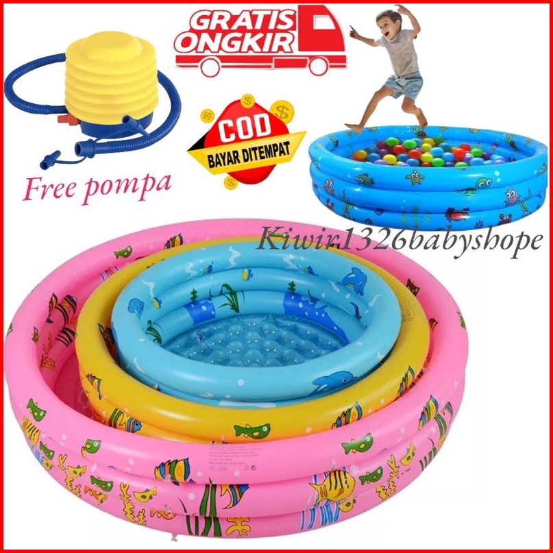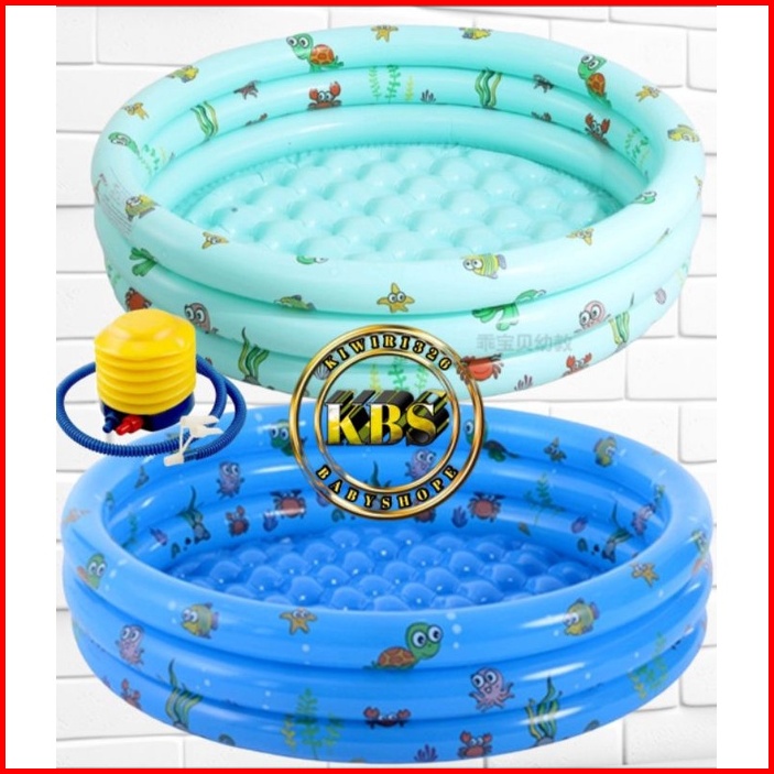 Kolam Renang Anak Bulat 150cm Alas Gelembung Motif Ikan - Kolam Karet Alas Gelembung