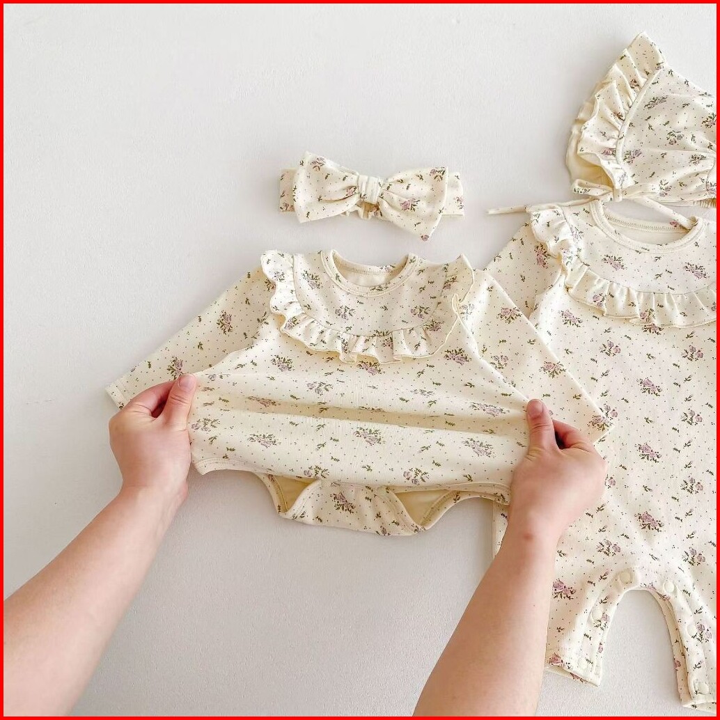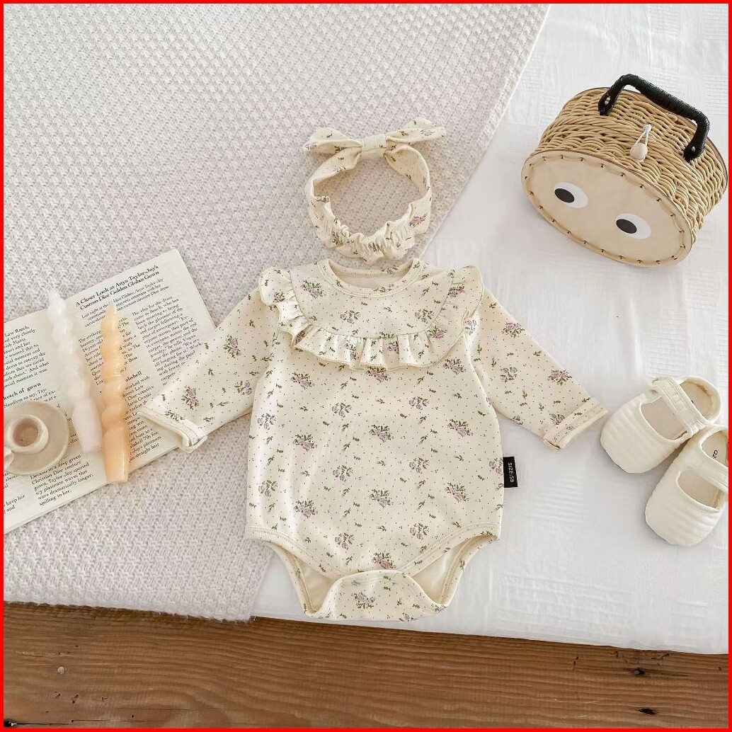 Baju Anak Bayi Perempuan Import Baju Bayi Lengan Panjang Impor Jumper Newborn Motif Bunga Bunga Dengan Hair Band