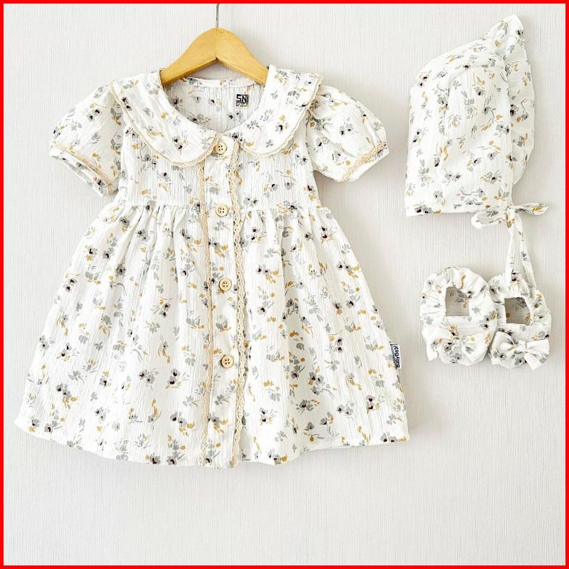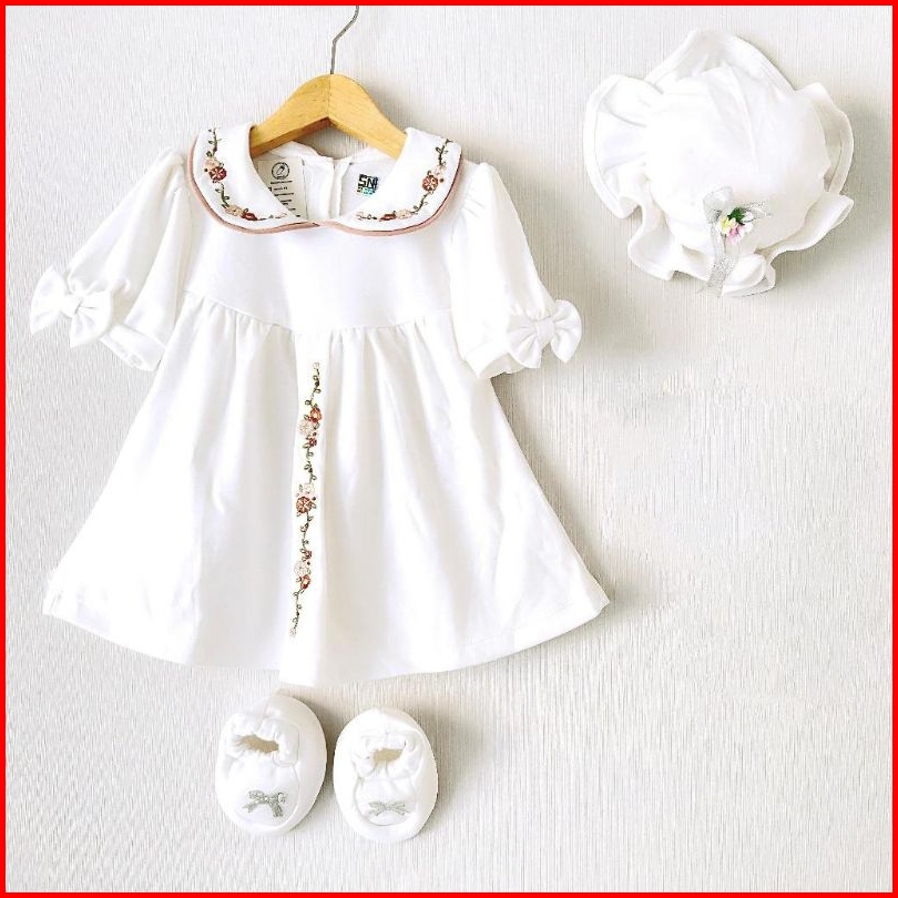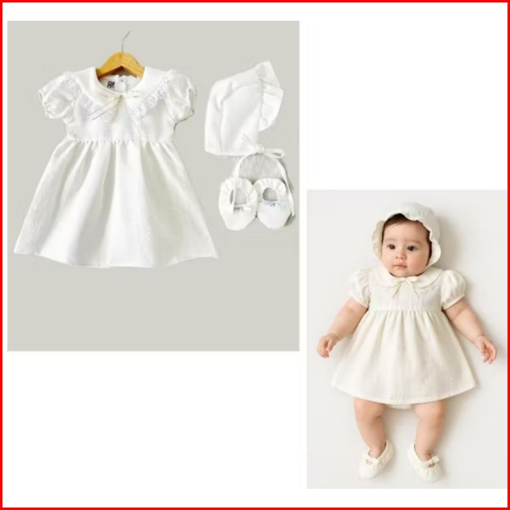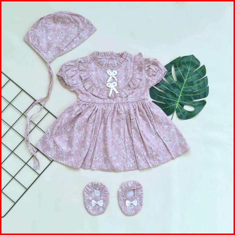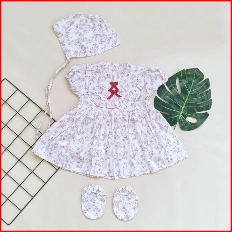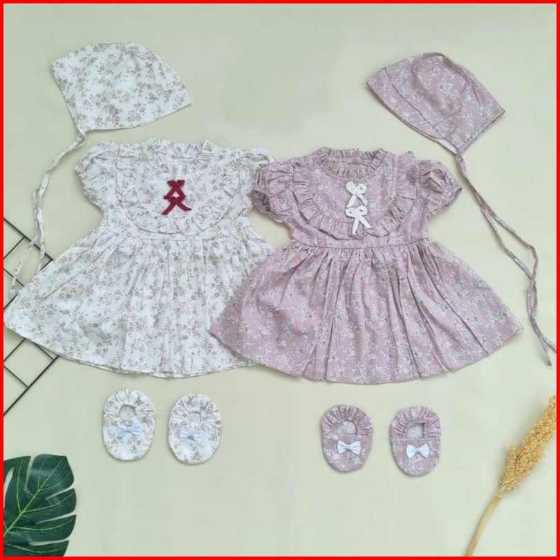 Dress Bayi Perempuan Topi Bonet Fay Dress Set Lengkap Dengan Sepatu Preewalker