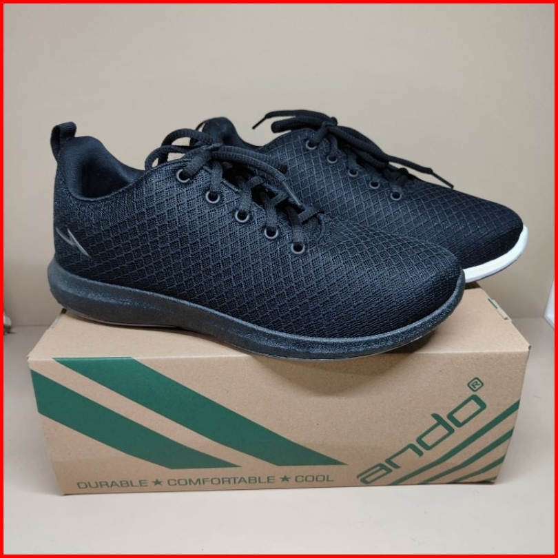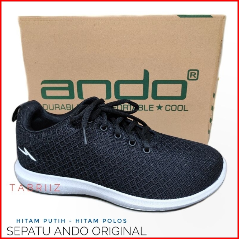 Sepatu Ando Tali Hitam Putih Hitam Polos Sepatu Sneaker Ando - 100 Original