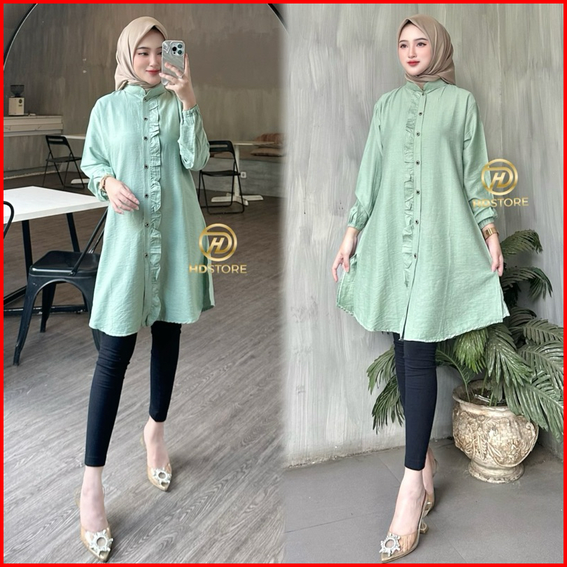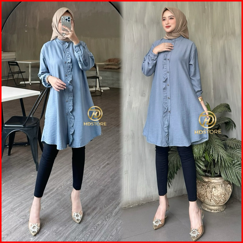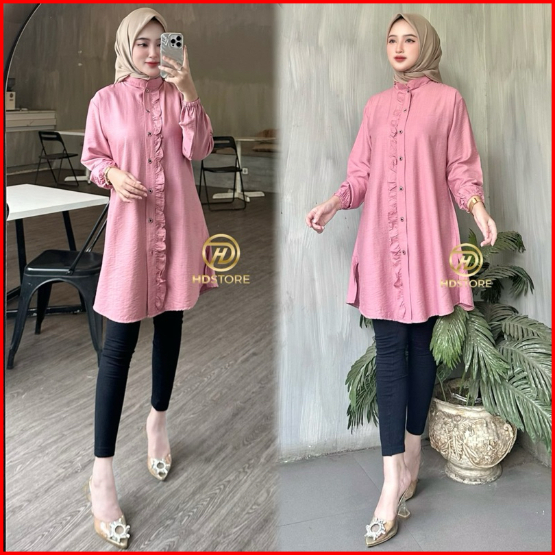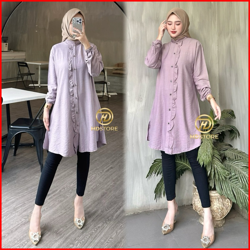 Marsela Tunik Polos Pololinen Kemeja Tunik Pololinen Atasan Wanita Basic