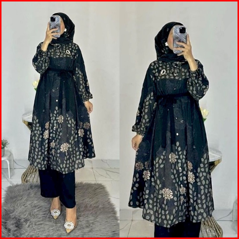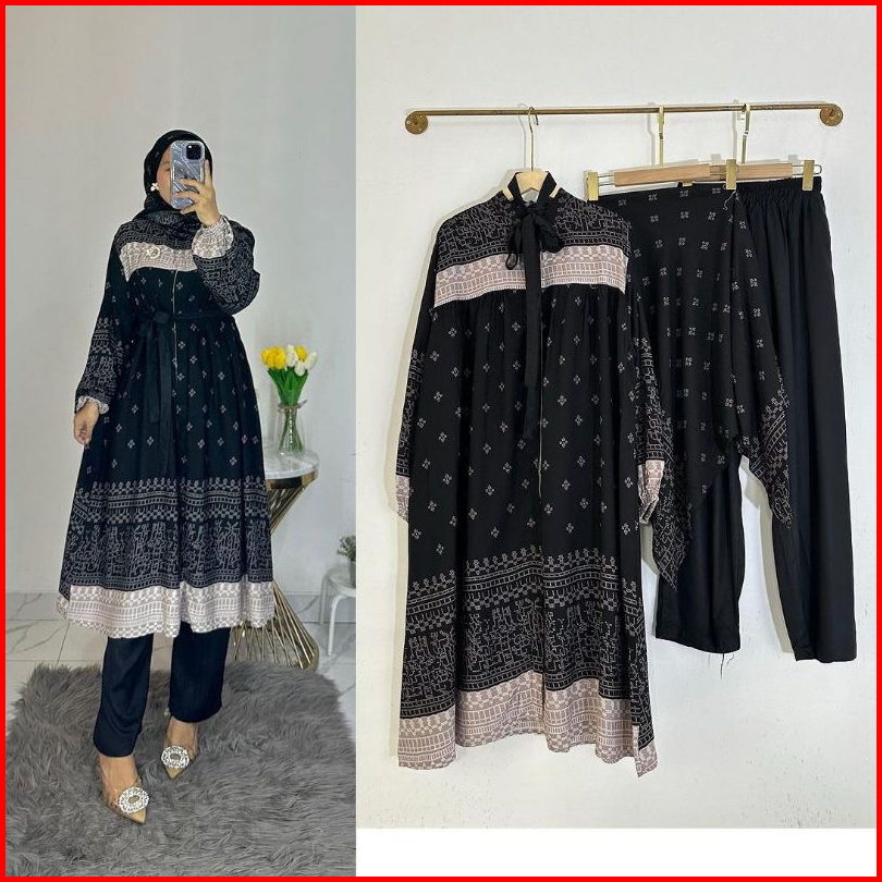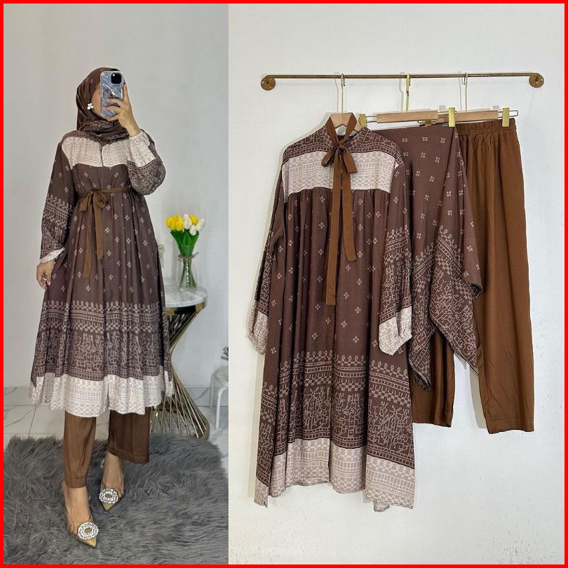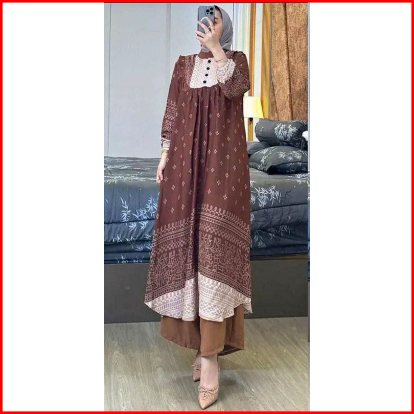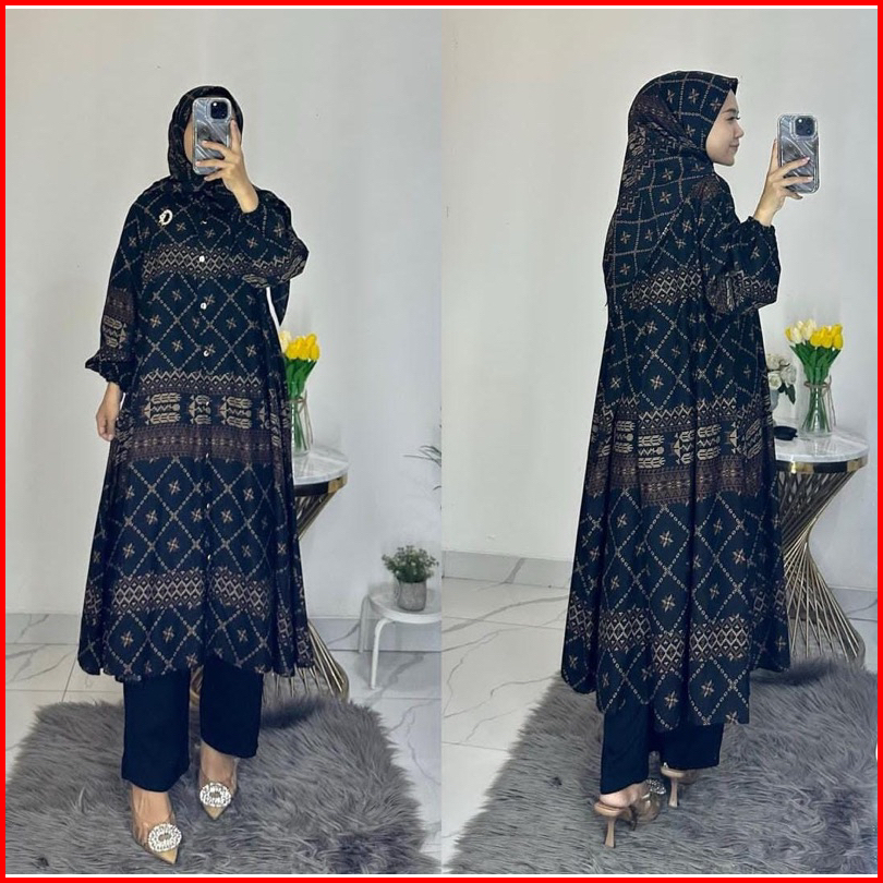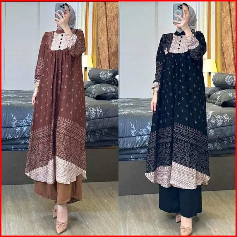 One Set Etnik Setelan Tunik Hijab Bahan Rayon Premium Busui Friendly Jumbo