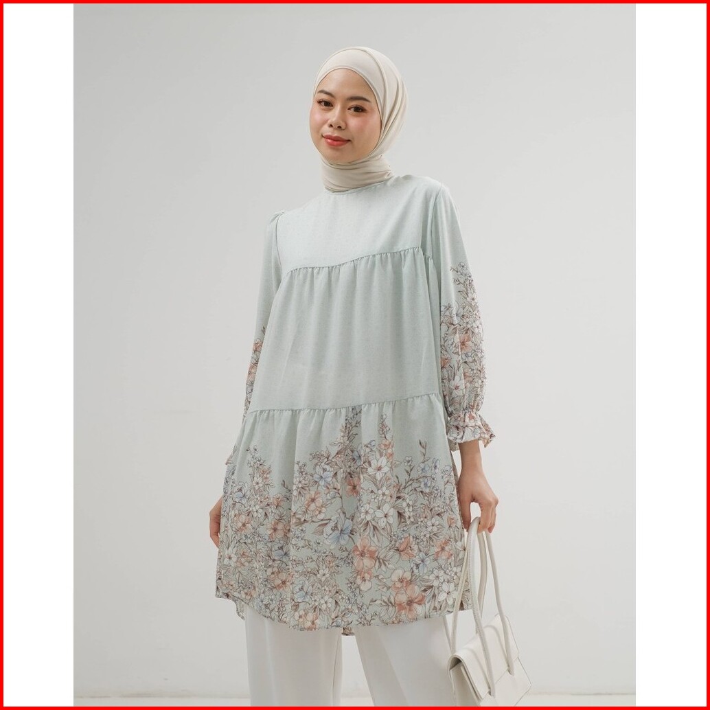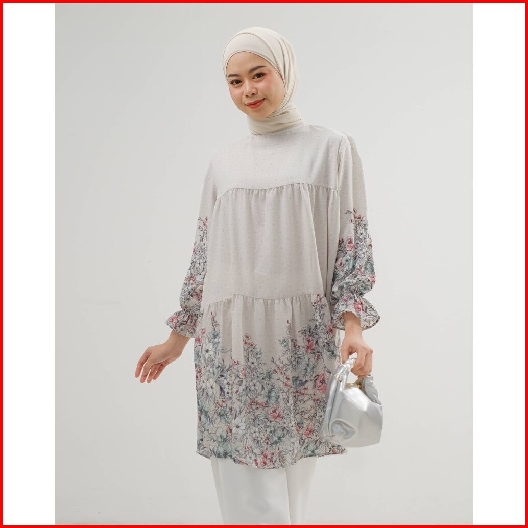 Mayoutfit Alaire Tunic Atasan Tunik Flare Motif Bunga Lengan Karet