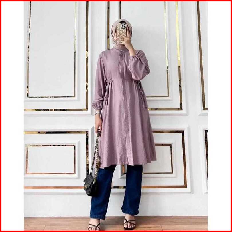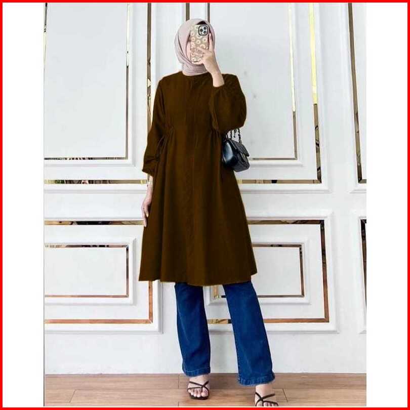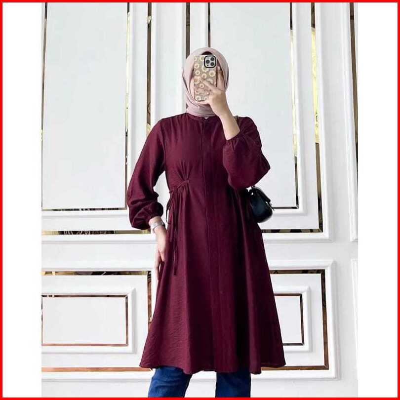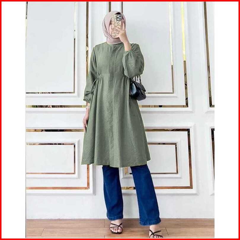 Amira Tunik Tali Pinggang Tangan Karet Kerah Changhai Bahan Rayon Twill Premiumby Ffa