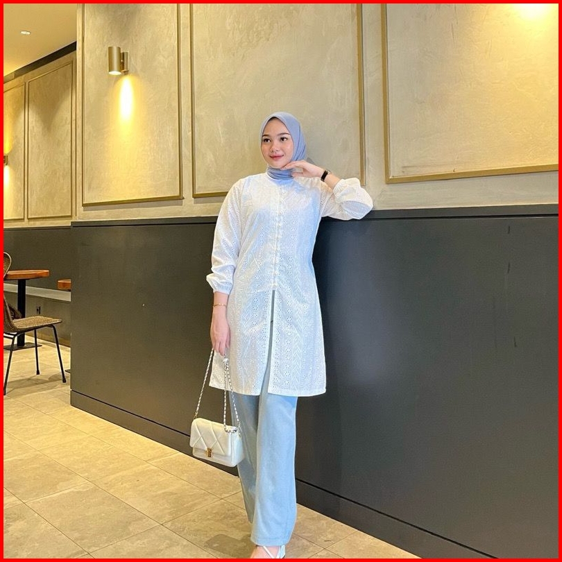 Chea Tunik Cotton Bordir Zea Tunik Cotton Bordir Tunik Kondangan Outer Embroidery Daun Accories