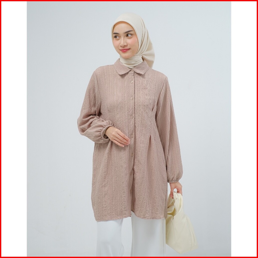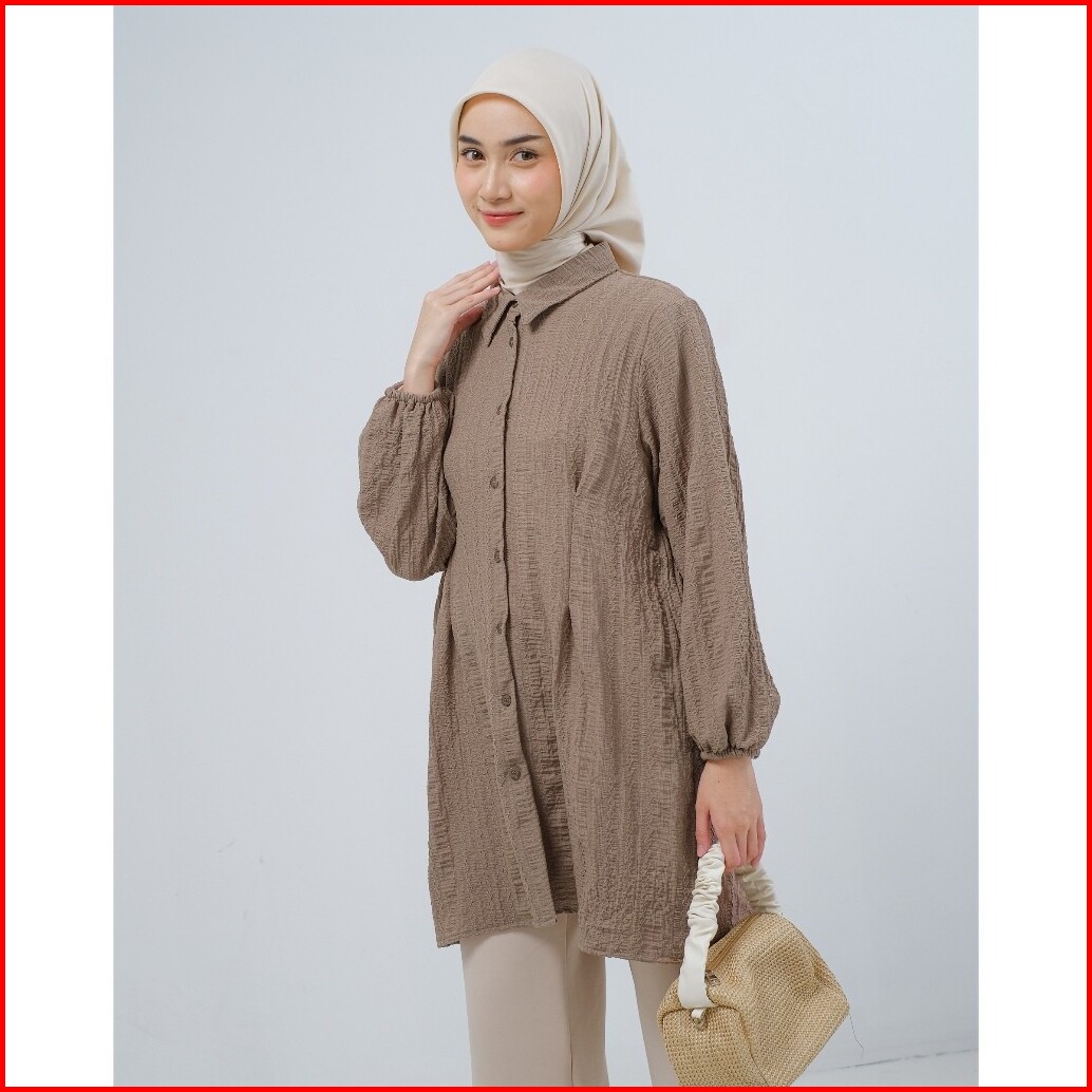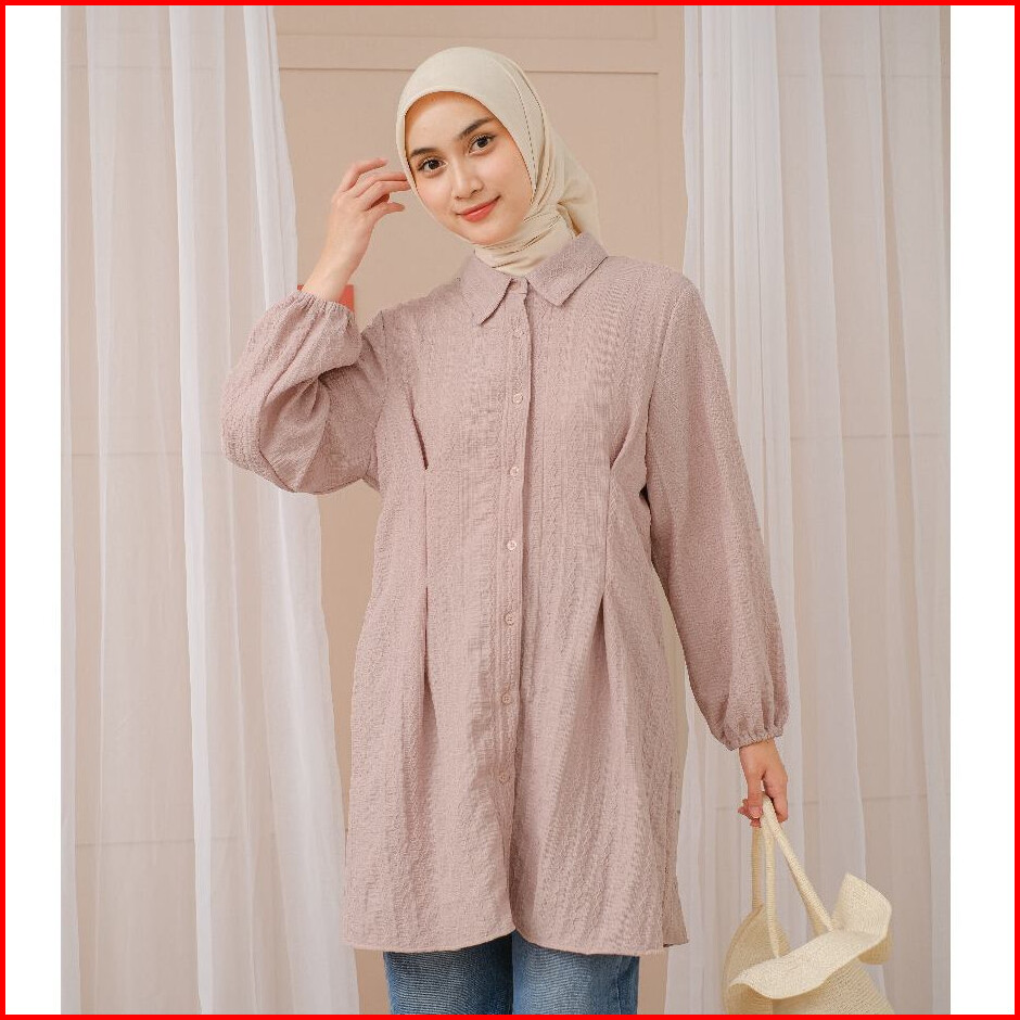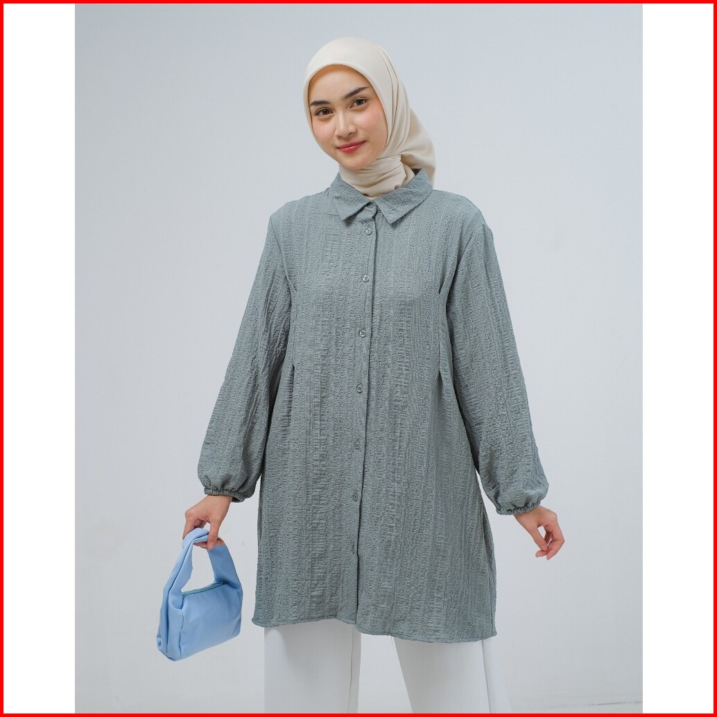 Mayoutfit Nyla Tunic Tunik Kemeja Lipit Kancing Depan Lengan Karet