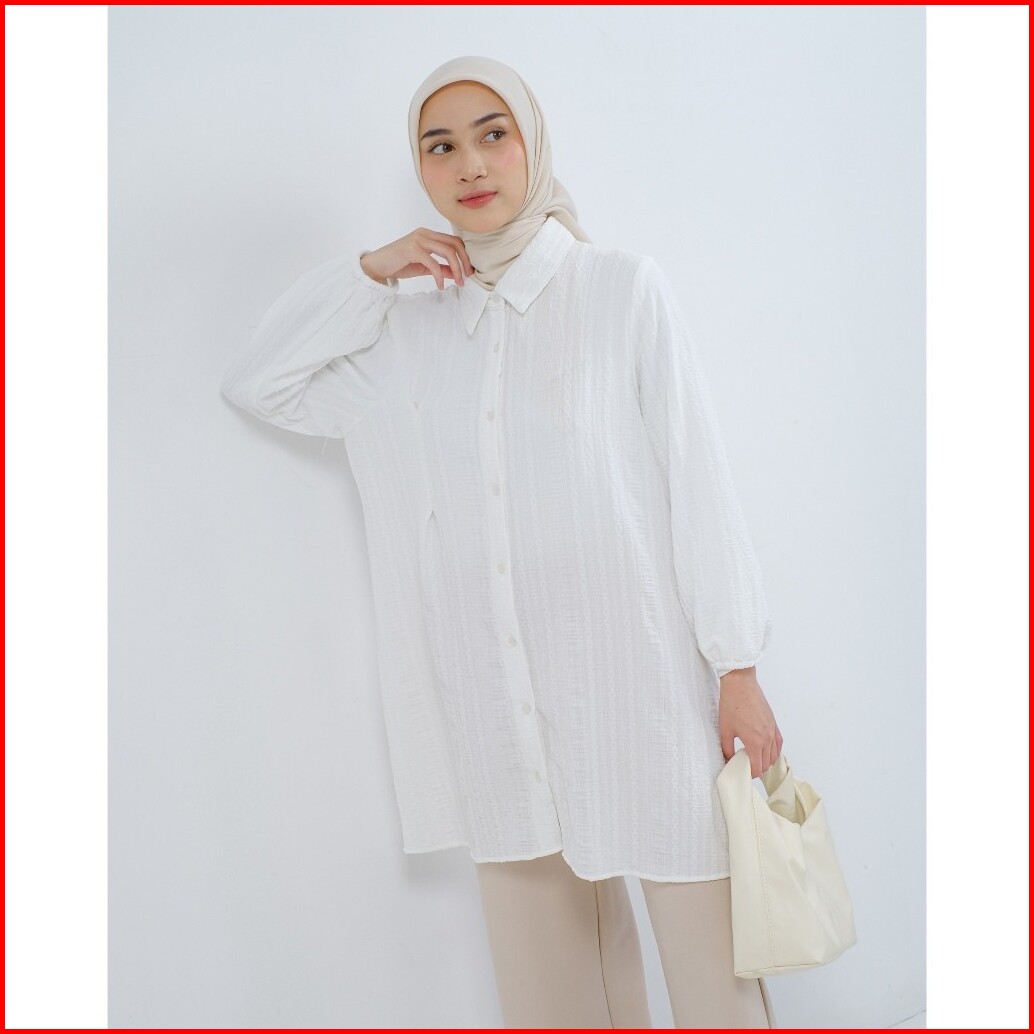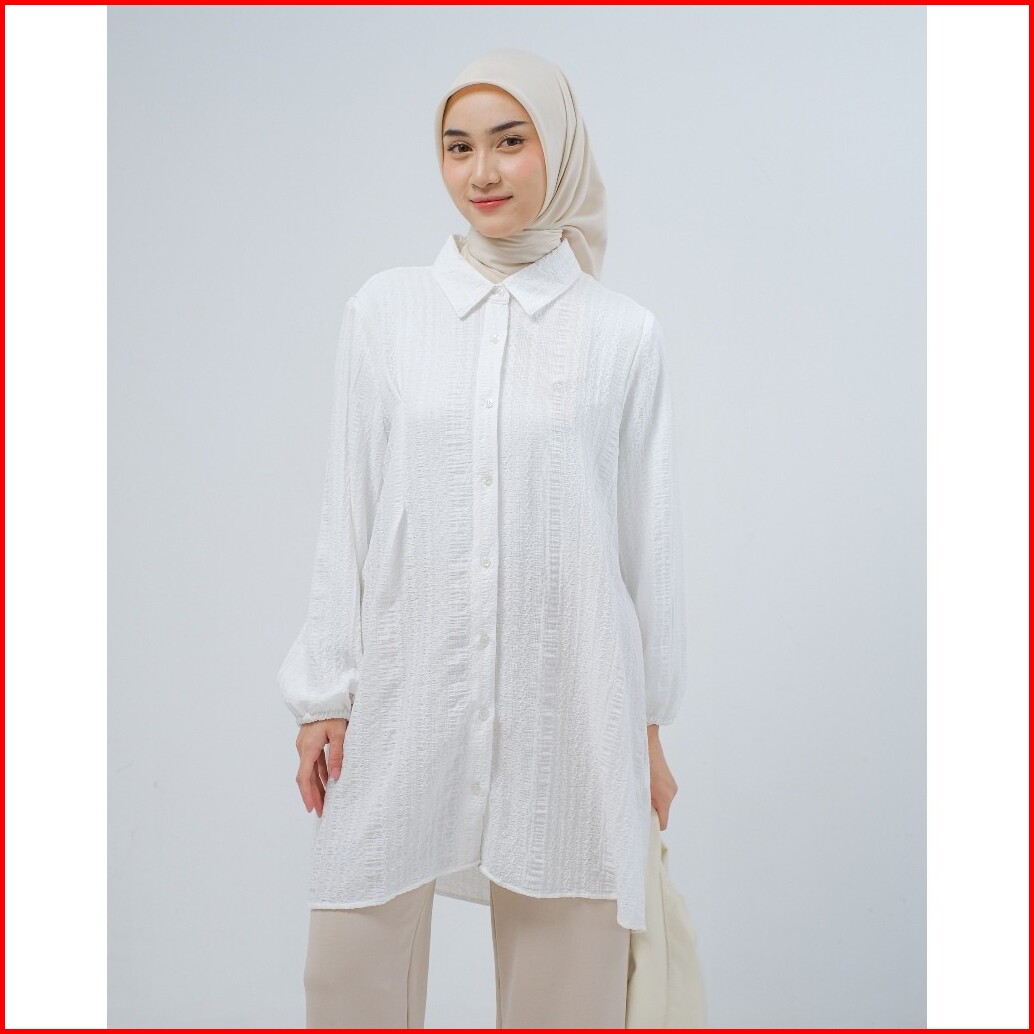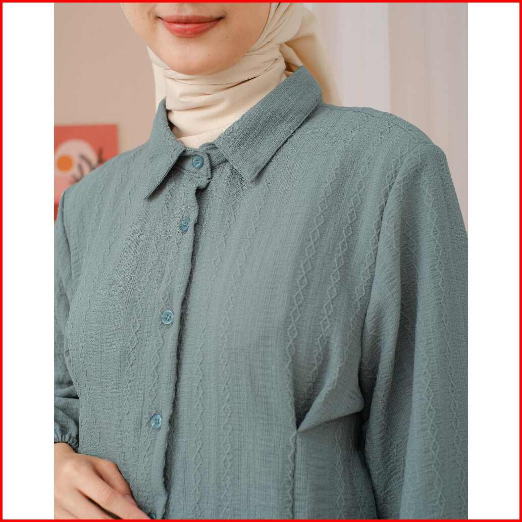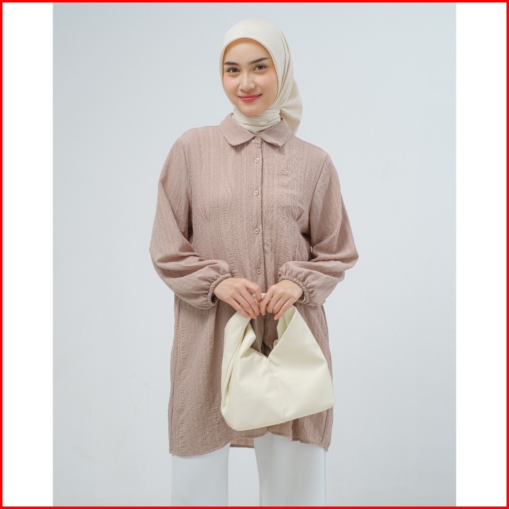Mayoutfit Nyla Tunic Tunik Kemeja Lipit Kancing Depan Lengan Karet