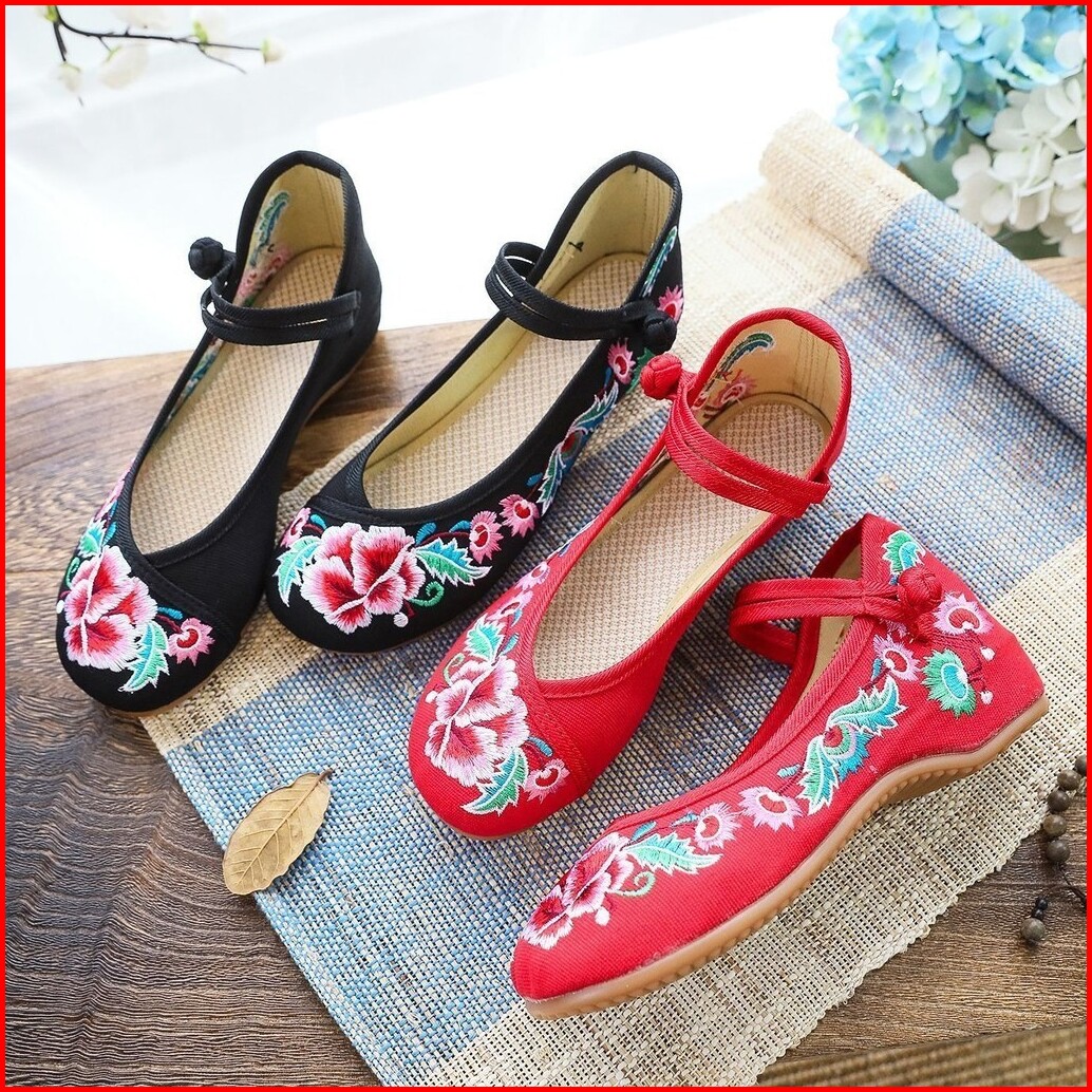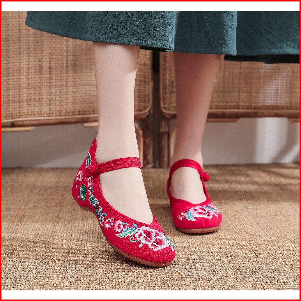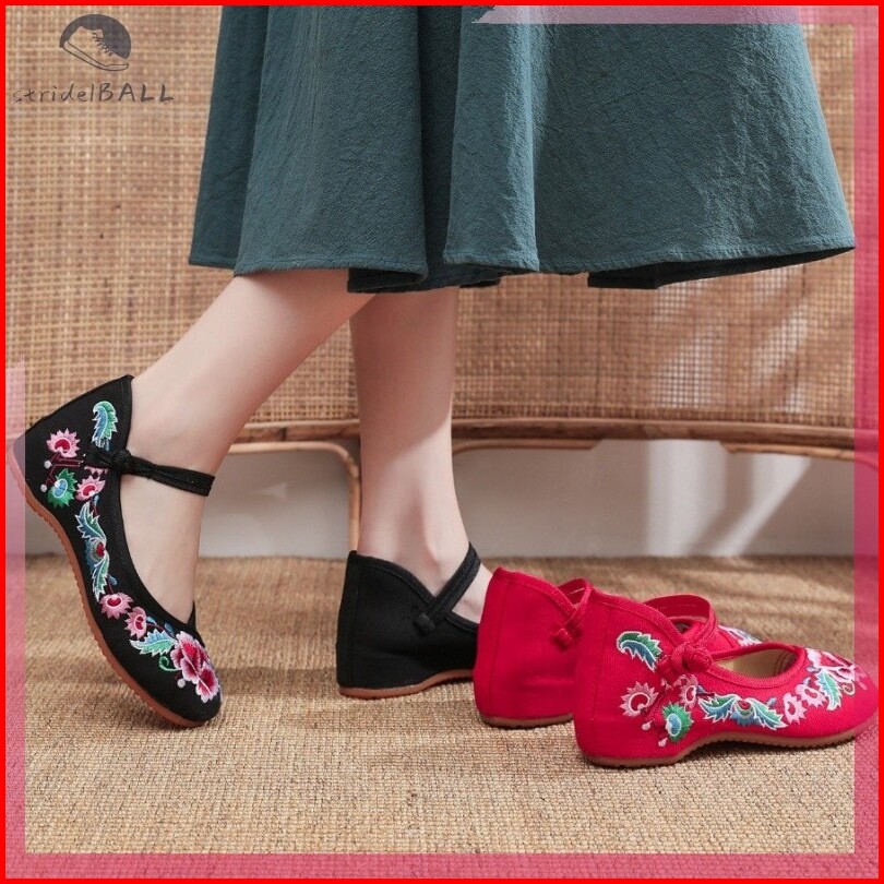 Ready Stock Sepatu Hanfu Slip On Wanita 2025 - Bordir Tionghoa Vintage Hanfu Hak Nyaman Hf33