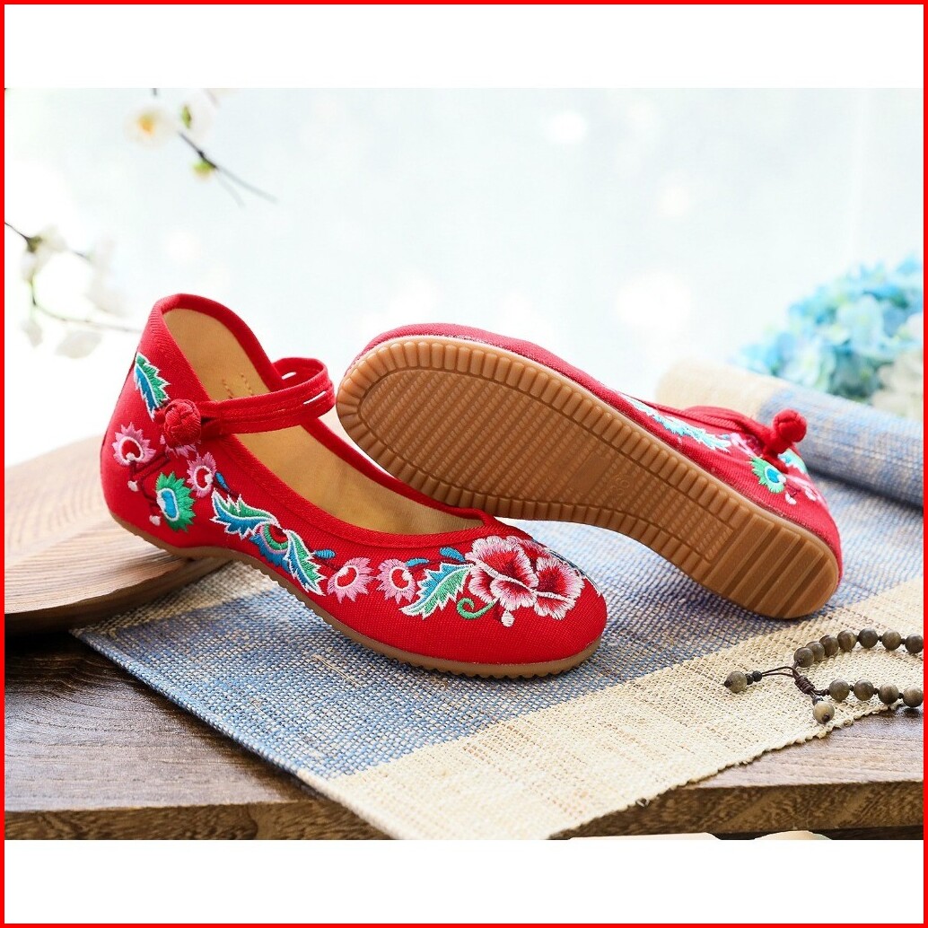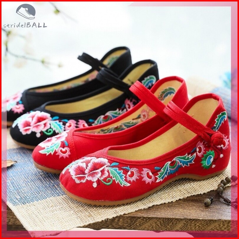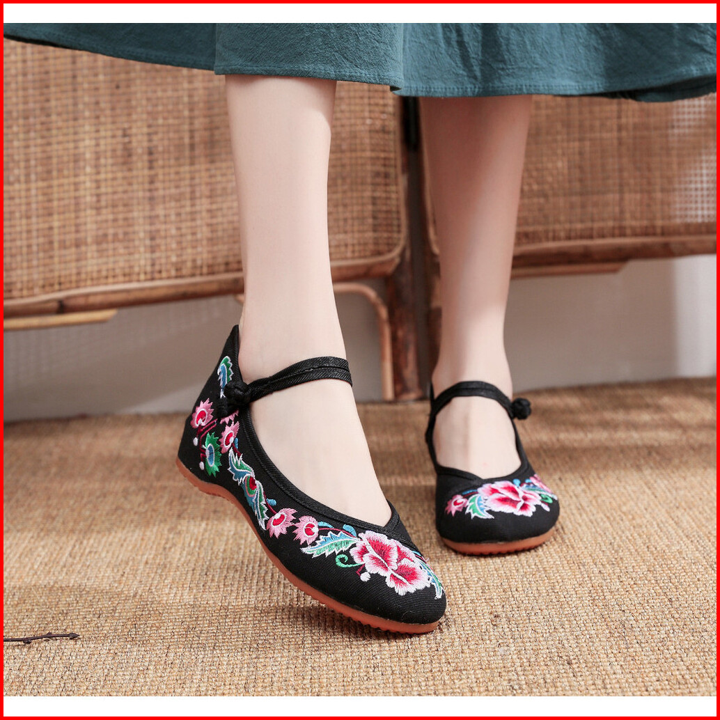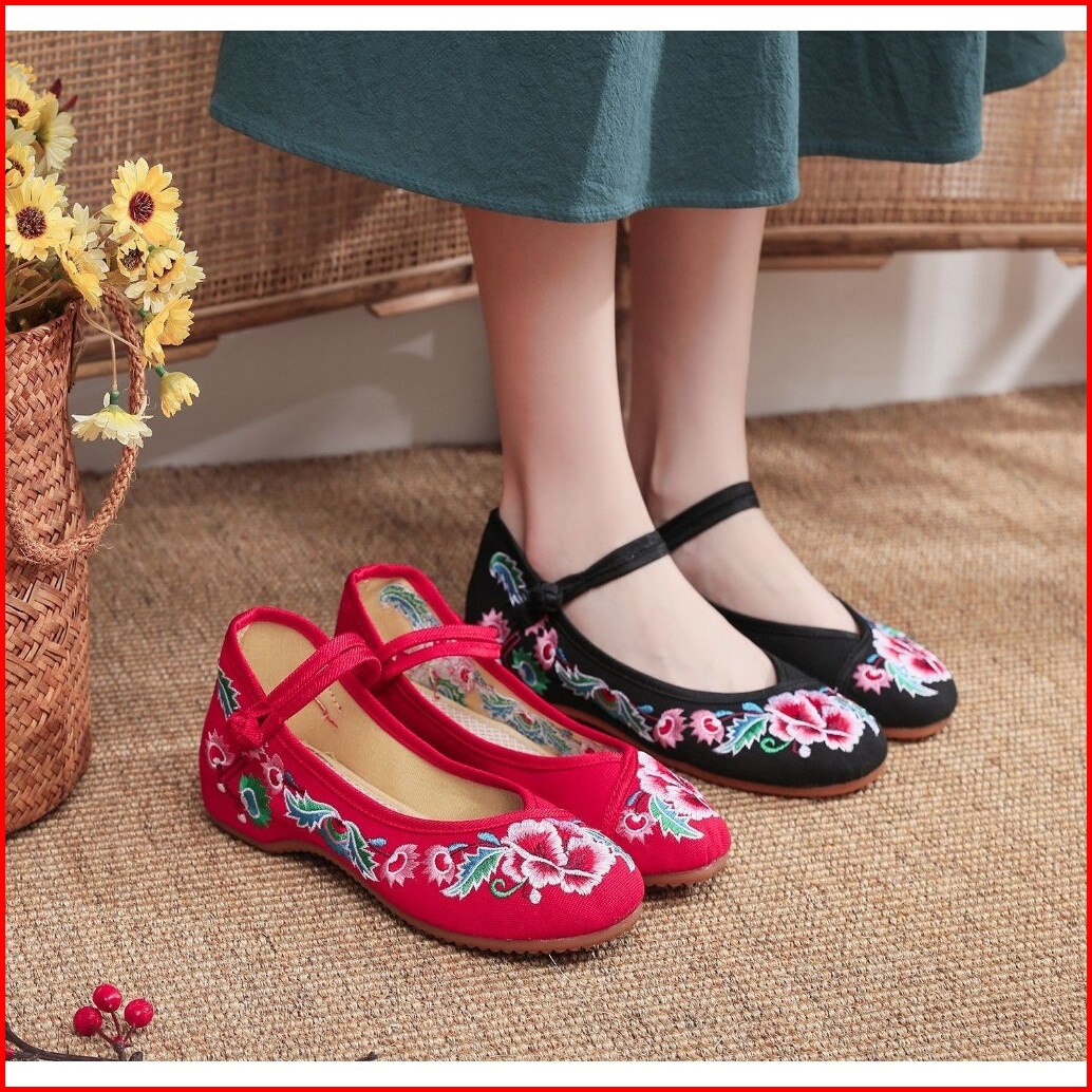 Ready Stock Sepatu Hanfu Slip On Wanita 2025 - Bordir Tionghoa Vintage Hanfu Hak Nyaman Hf33