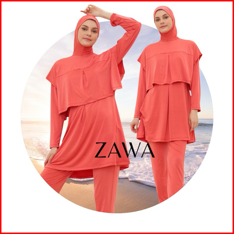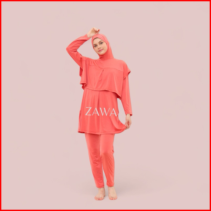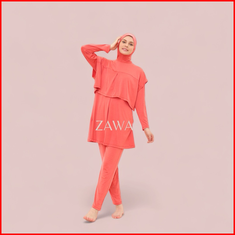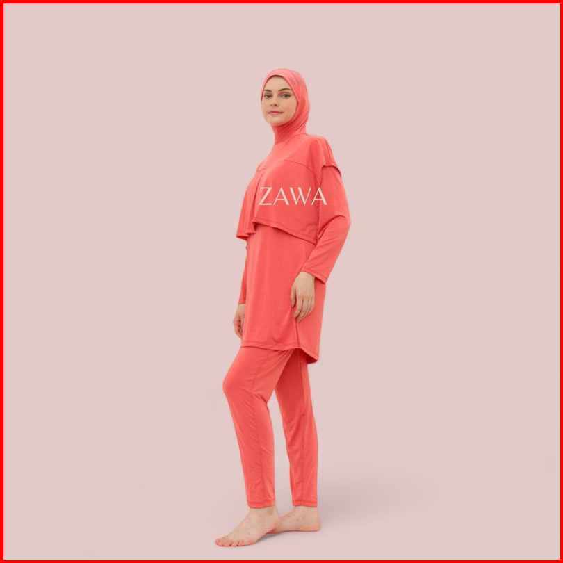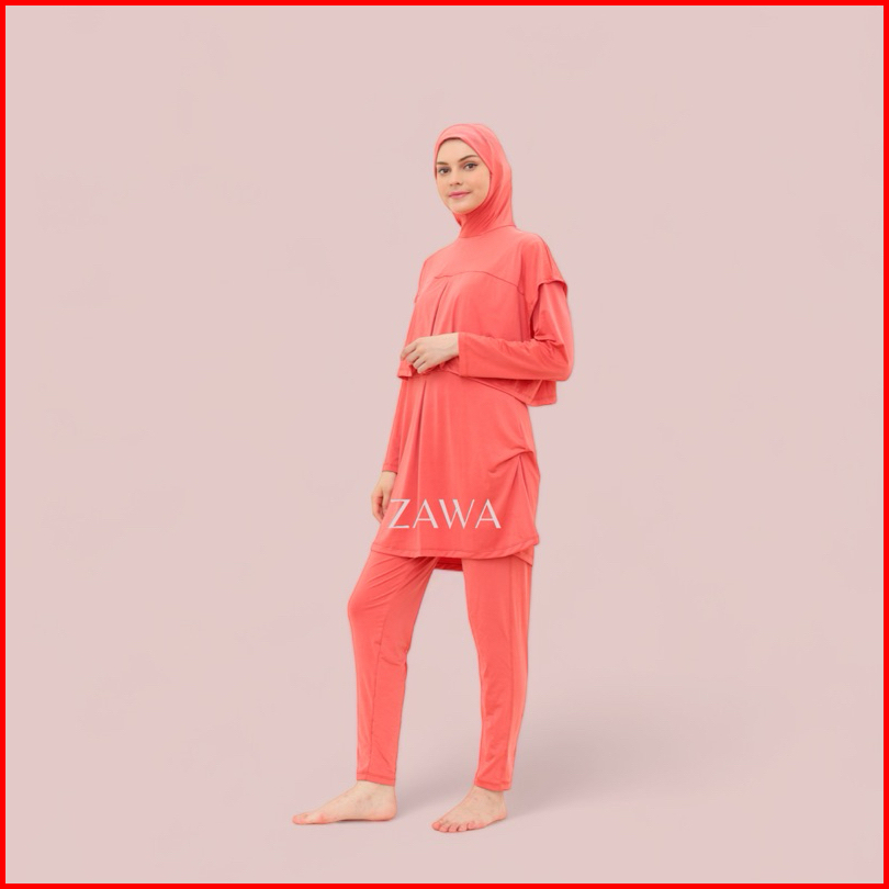 Damla Sport Muslimah Swimwear Peach - Baju Renang Wanita Hijab Syari Remaja