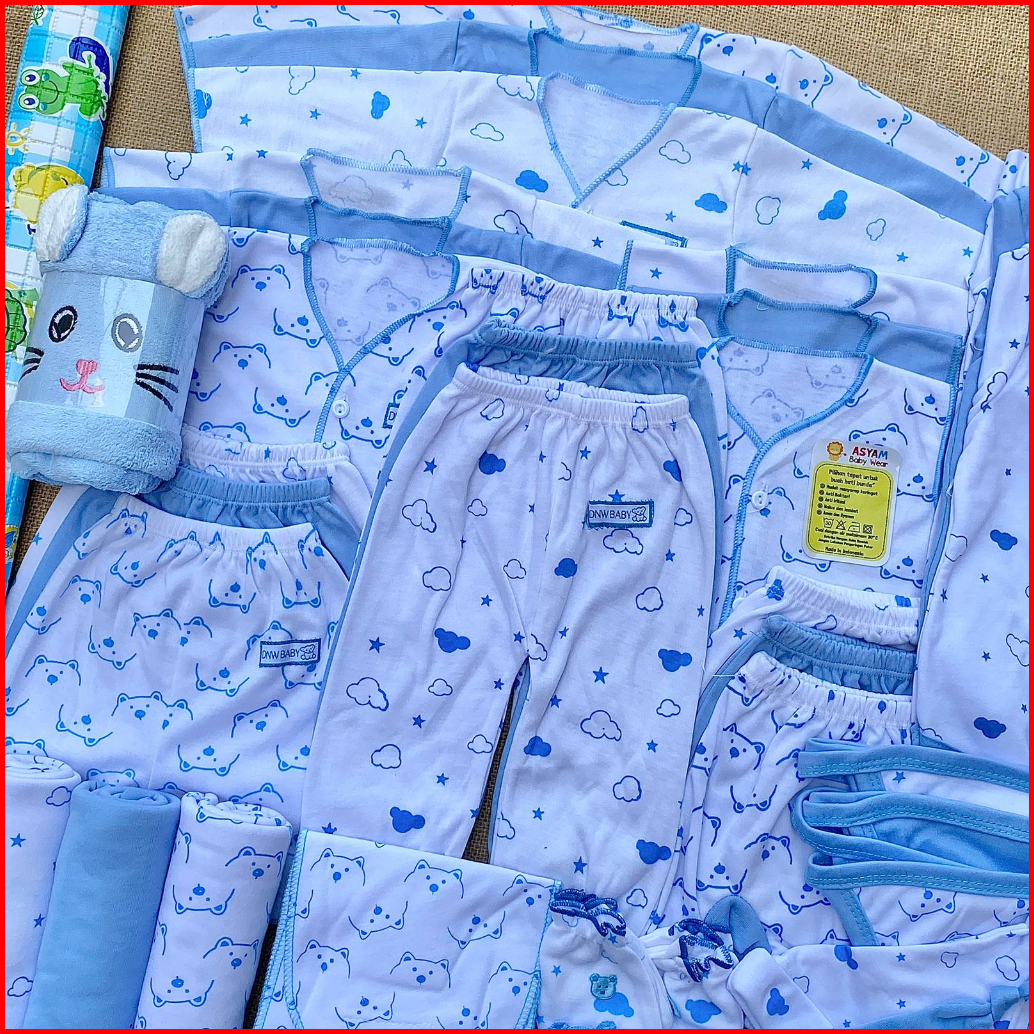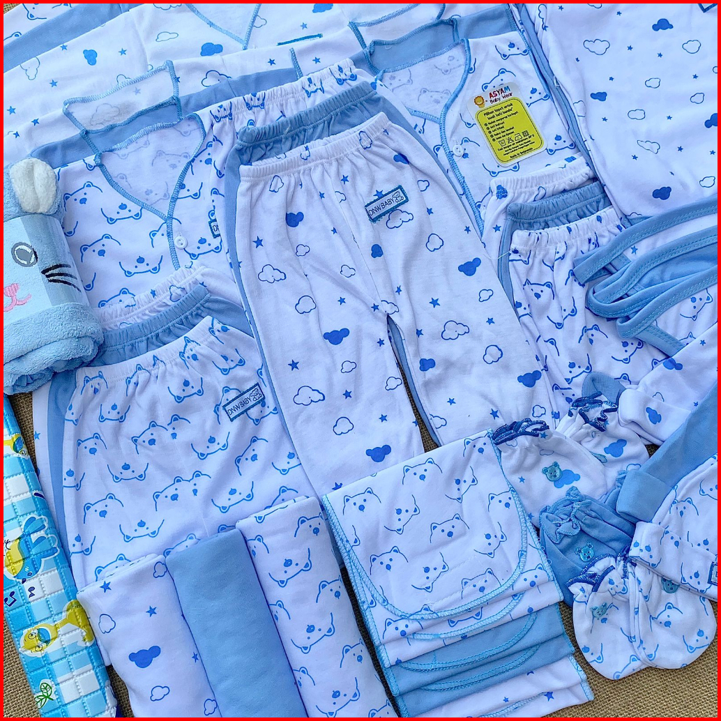 53 Pcs Paket Hemat Komplit Baju Bayi Baru Lahir Paket Hemat Baby Paket Komplit Bayi Baru Lahir Serian Skyblue Asyam Baby