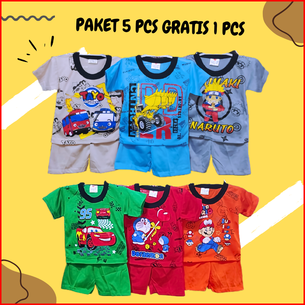 Bundling 6 Setelan Anak Baju Kaos Setelan Anak Baju Anak Bayi Motif Random