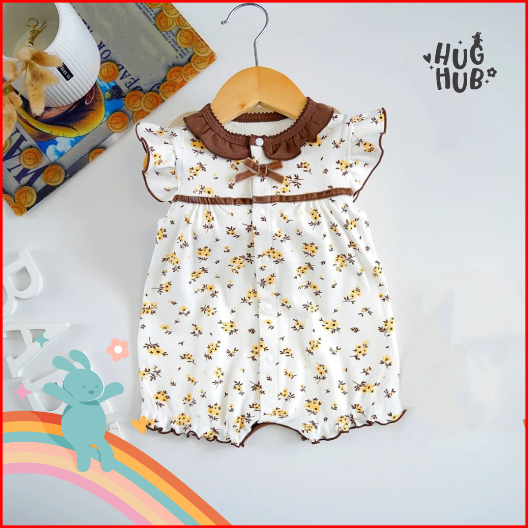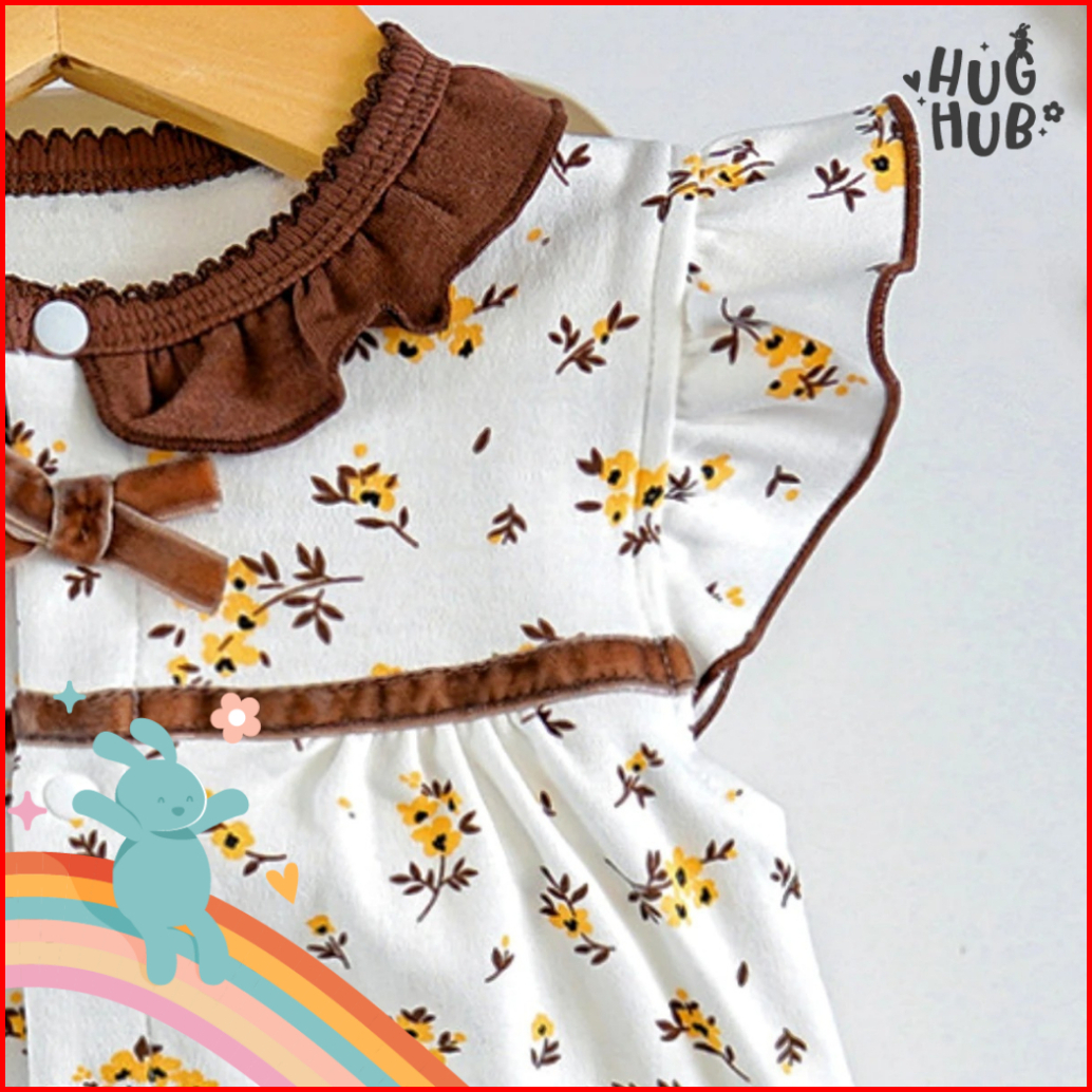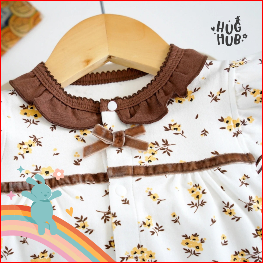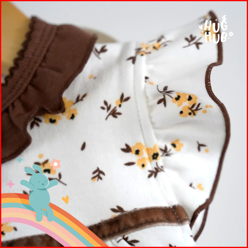 Hughub Jumper Bayi Perempuan Motif Bunga Cokelat Lucu Baju Usia 3-12 Bulan