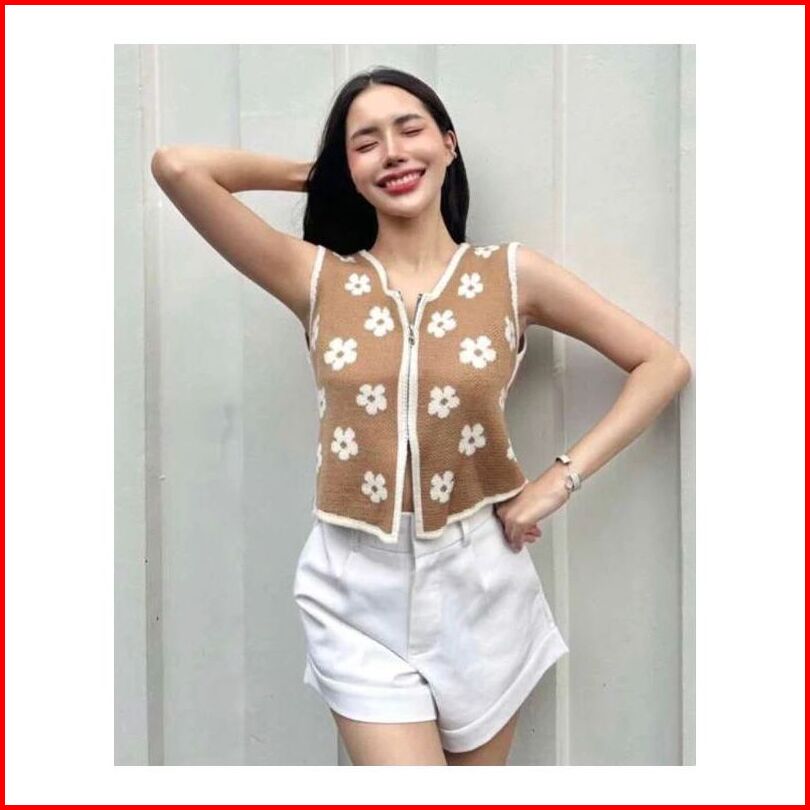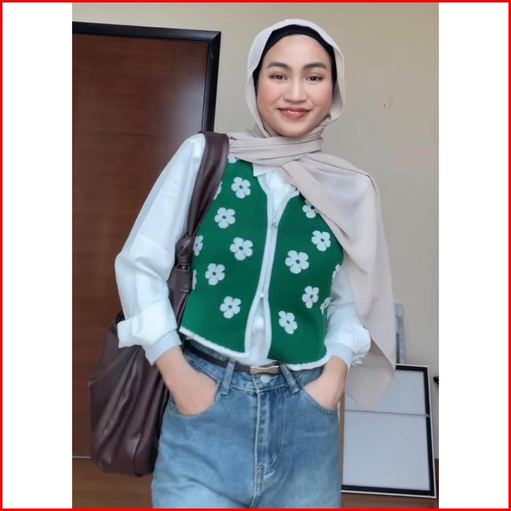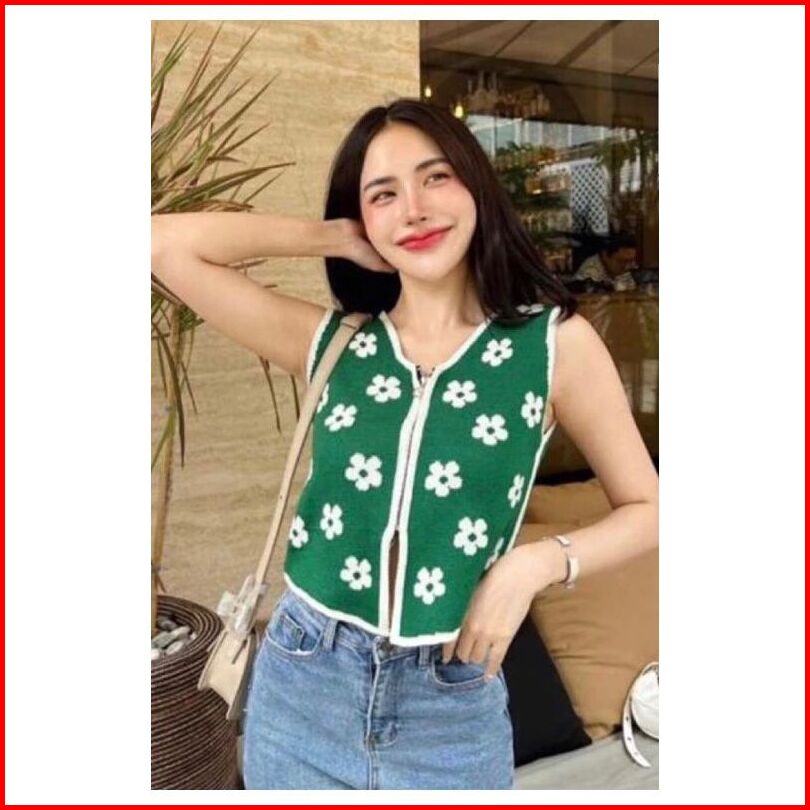 Vest Rompi Rajut Flower Crop Xaviera Ootd Atasan Wanita